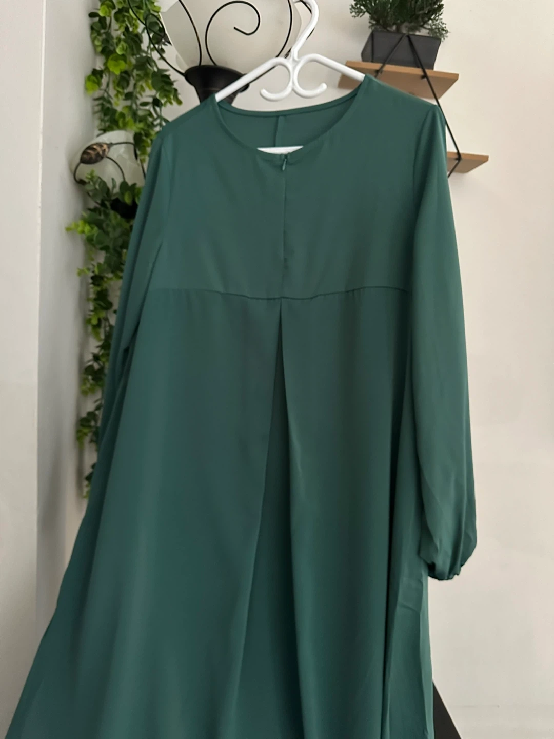 26Selling a beautiful green Abaya! It has a zip at the top front side with pockets! The abaya features a classic design and comfortable fit, perfect for various occasions. It's a great addition to any wardrobe! ✨ Brand new pieces! Size Small - Please refer to last picture for detailed measurement