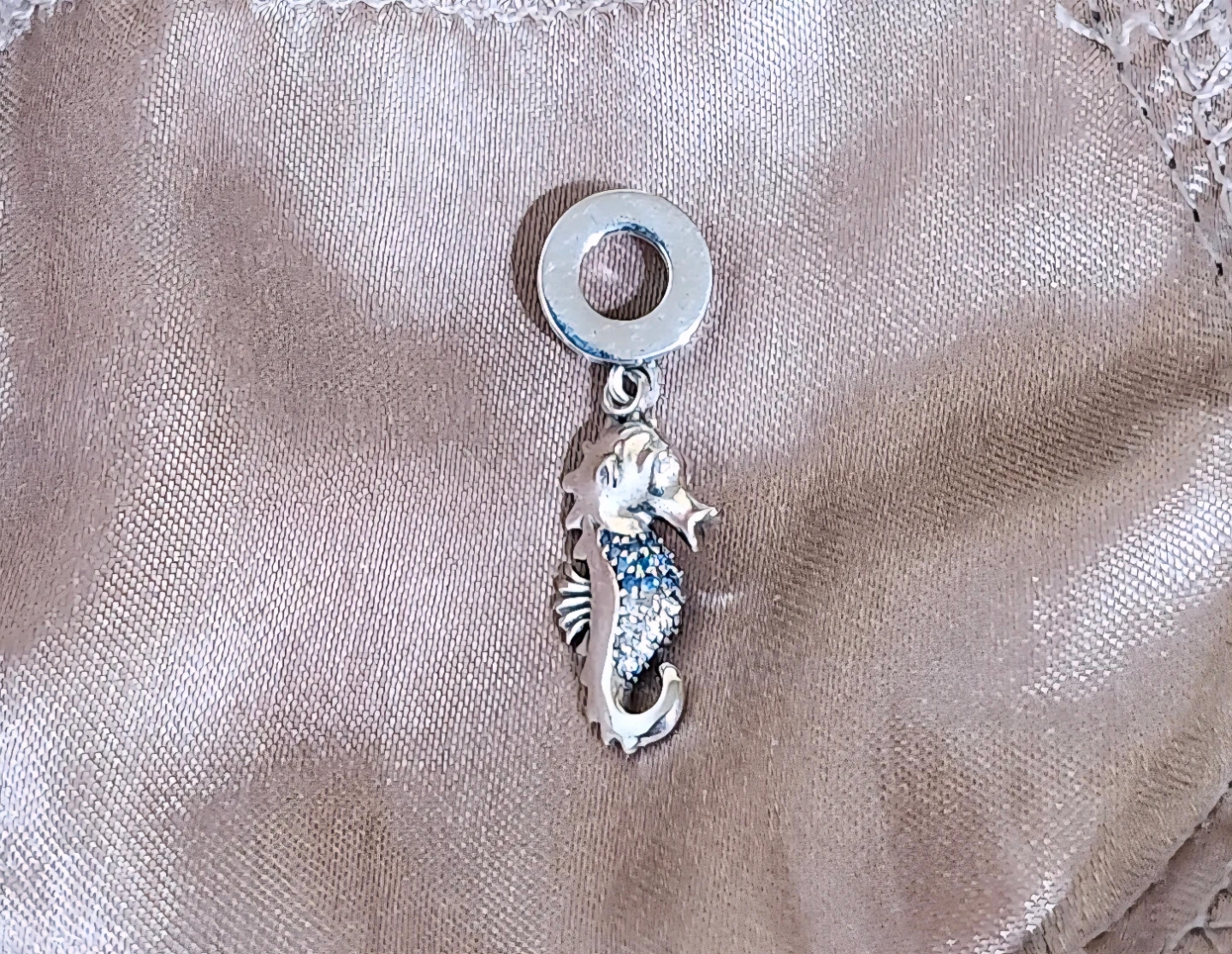 479Selling a cute seahorse charm! It features lovely blue accents. Perfect for adding a touch of the ocean to your bracelet or necklace