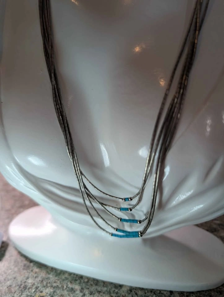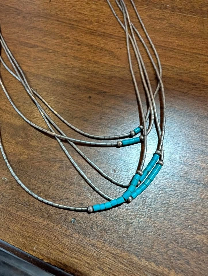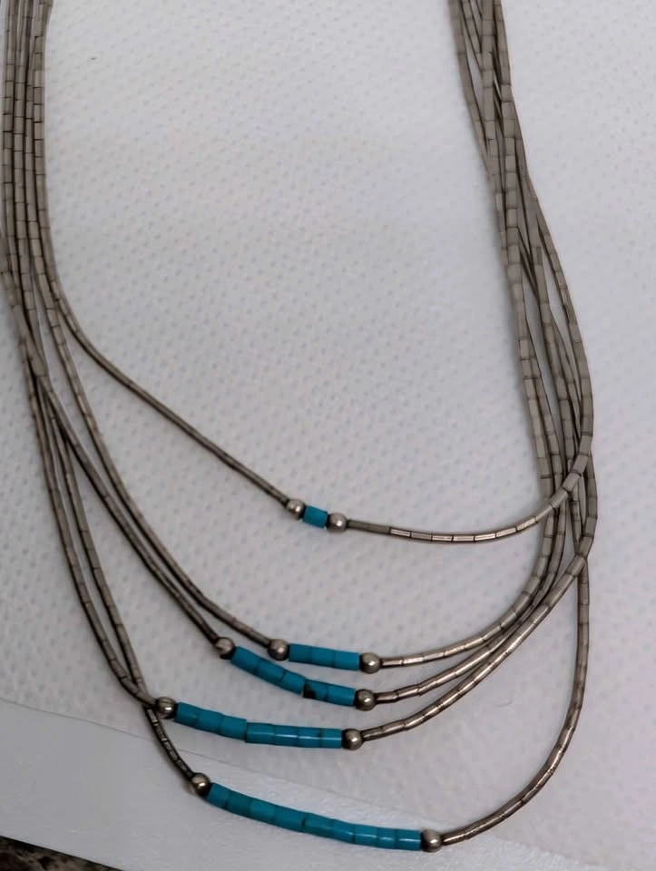 Sterling liquid silver 5 strand necklace genuine turquoise