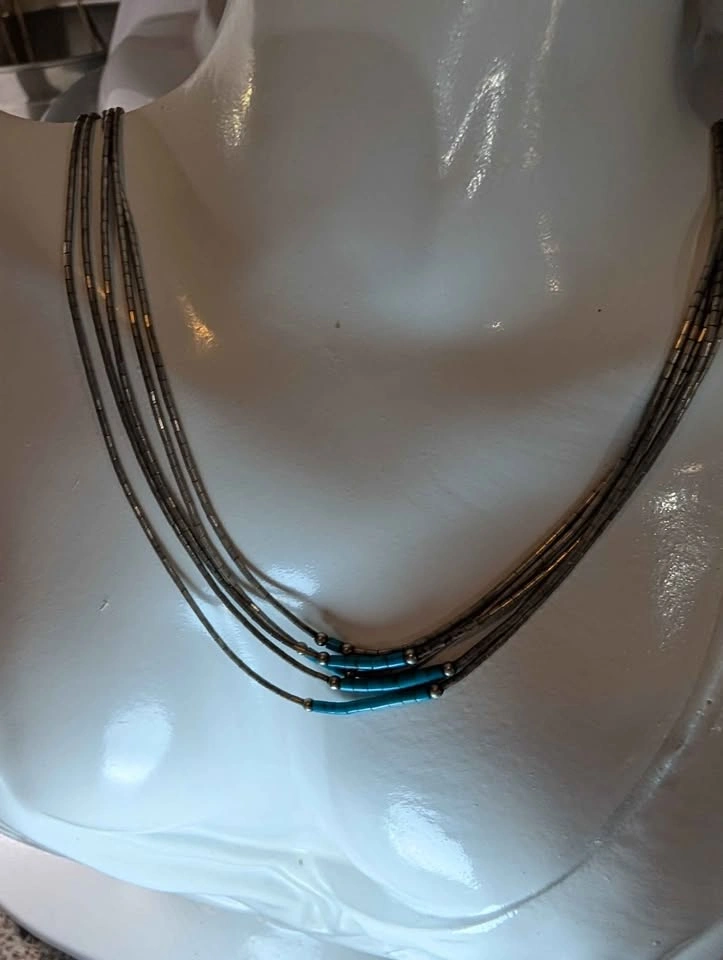 Sterling liquid silver 5 strand necklace genuine turquoise