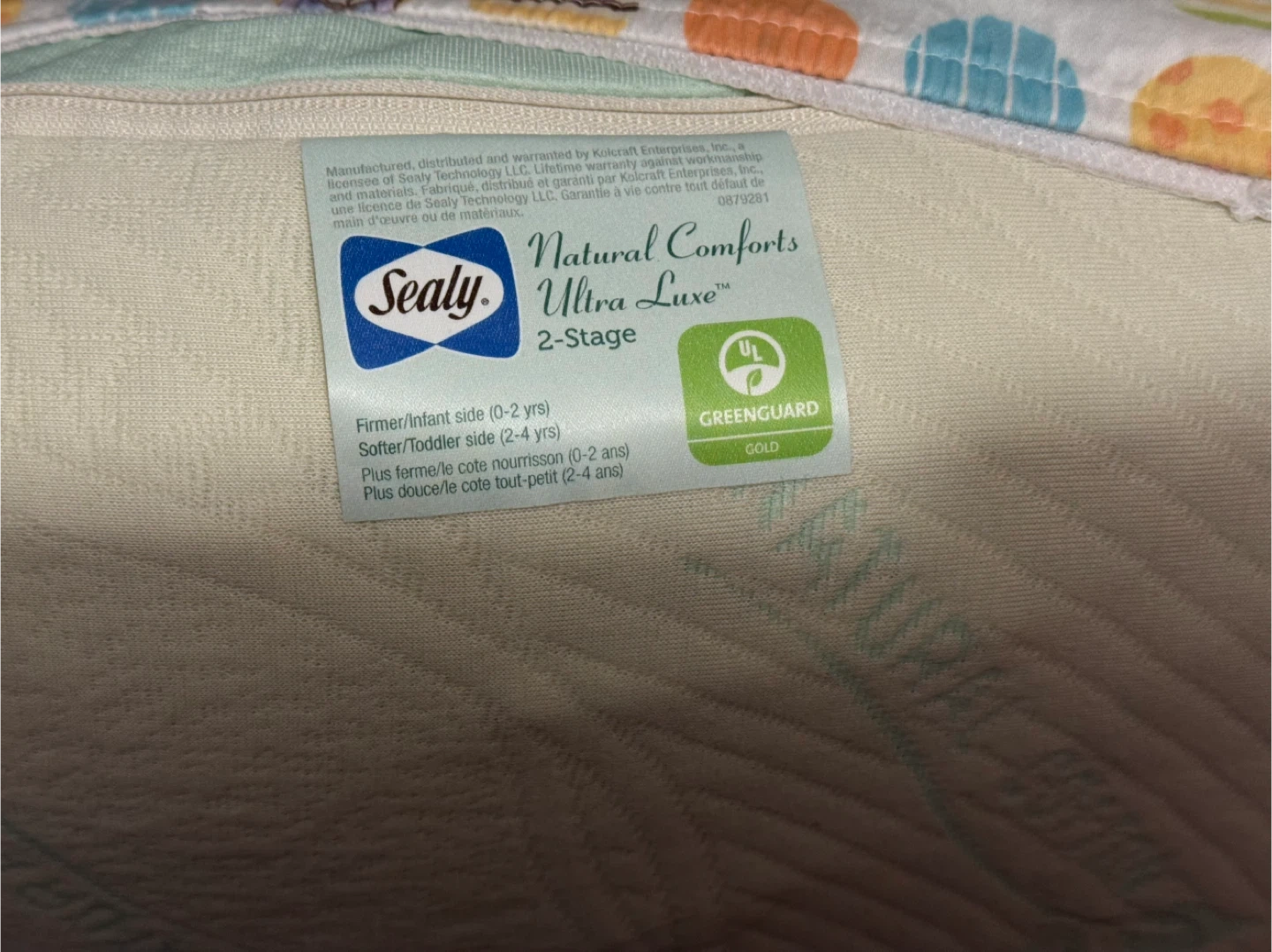 65Selling a Sealy Natural Comforts Ultra Luxe 2-Stage crib mattress. It's designed with a firmer side for infants (0-2 years) and a softer side for toddlers (2-4 years). Almost brand new.