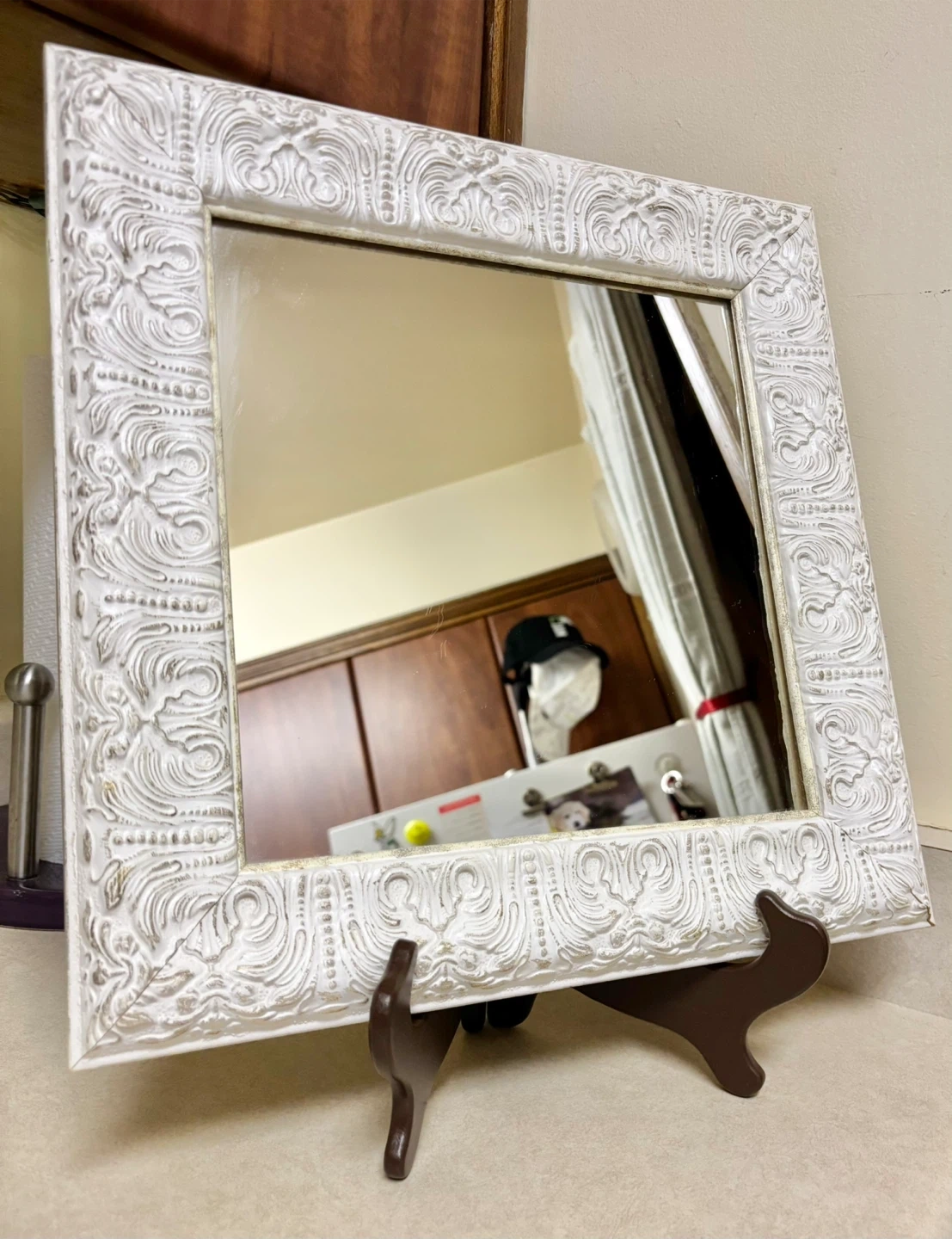 218Selling a Sears framed mirror with a lovely white frame. Hooks incl. It's in great condition and would look great in any room of the house. C/W a stand. Cash only price firm.