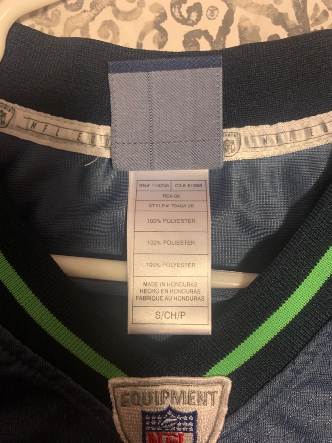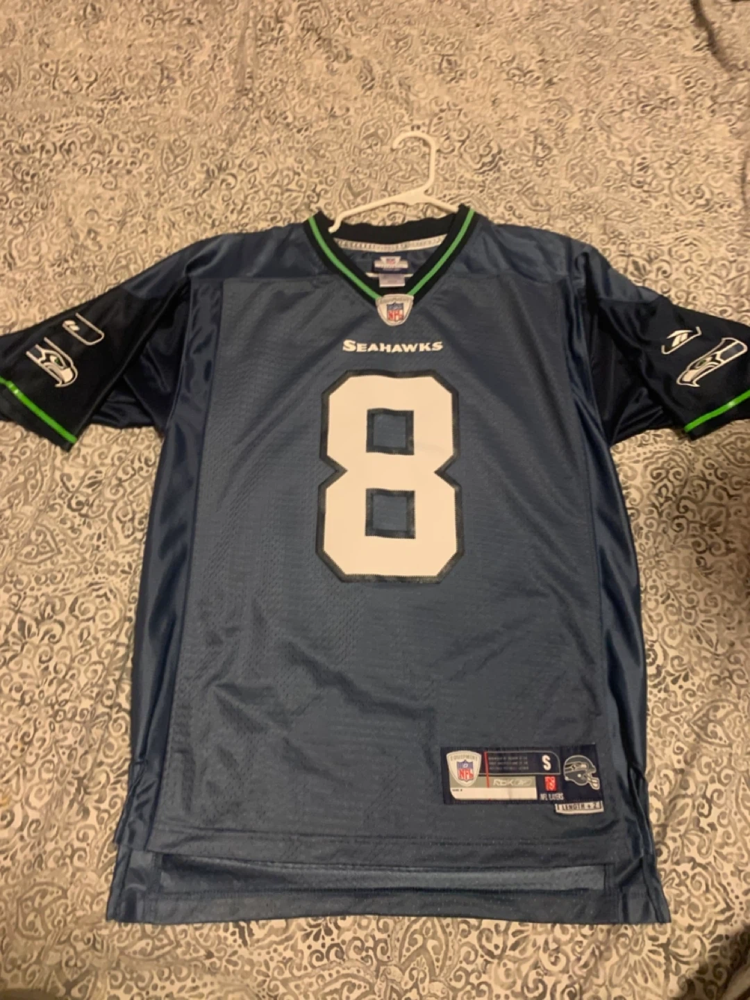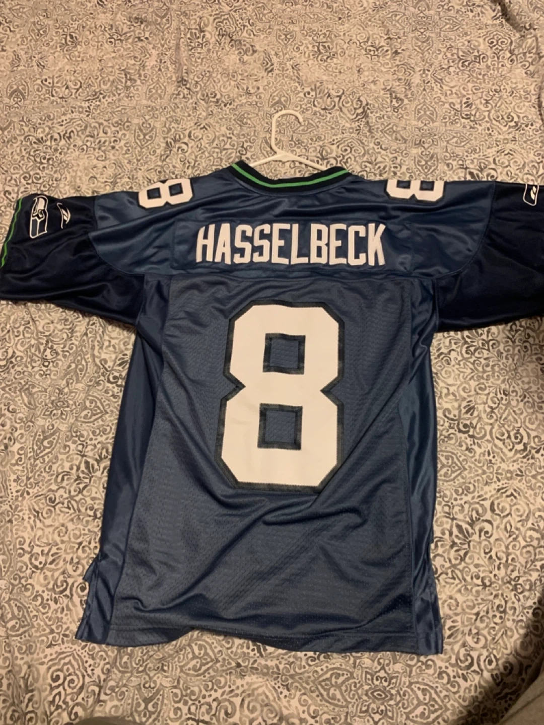 15Selling a Seattle Seahawks jersey with #8 Hasselbeck on the back! The size is Small and it's made of 100% polyester. It's in good condition and ready for a new fan!