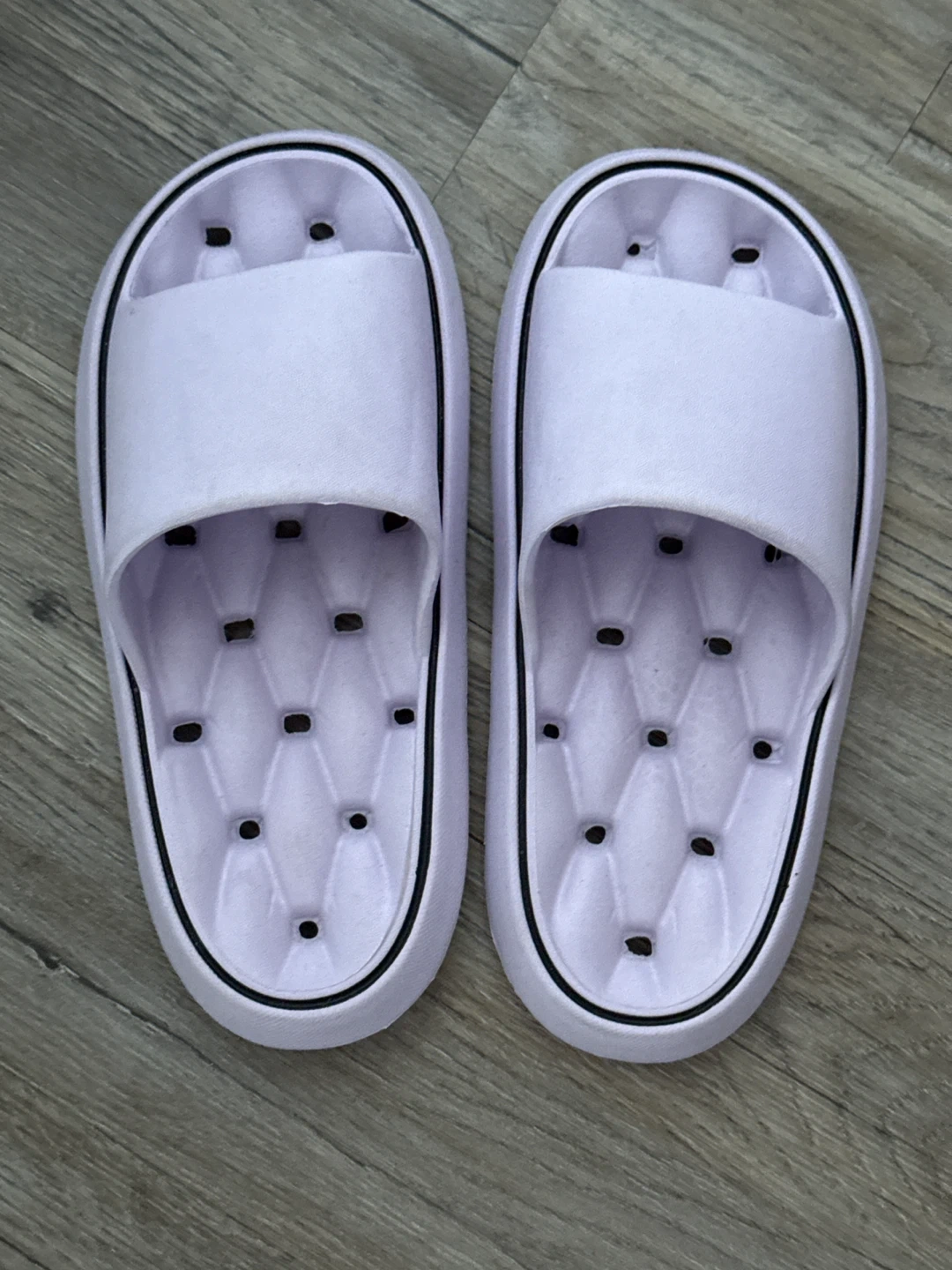 Selling a pair of cute lavender slides! They're in great condition and perfect for wearing around the house or running quick errands