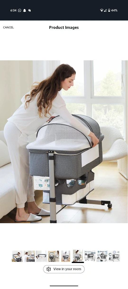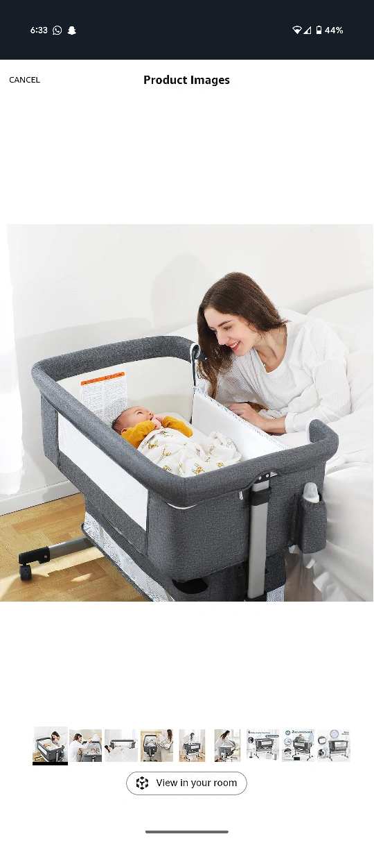 Here's a bedside bassinet for your little one! It's a lovely grey colour and looks to be in great condition. Perfect for keeping your baby close by during those early months