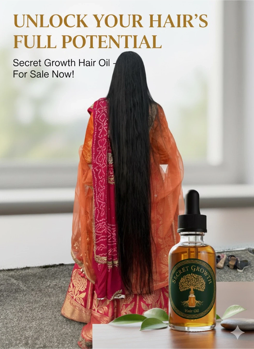 10Unlock the secret to beautiful, healthy hair with Secret Growth Hair Oil! This luxurious blend is made with natural herbs and traditional Ayurvedic care. It promotes thicker & stronger hair growth, reduces hair fall and breakage, and helps reduce dandruff & scalp dryness. It also prevents premature graying and adds deep nourishment & natural shine. Suitable for all hair types, it's your secret to strong, silky, and healthy hair!