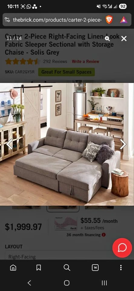 Carter 2 piece Sleeper sectional sofa from the Brick