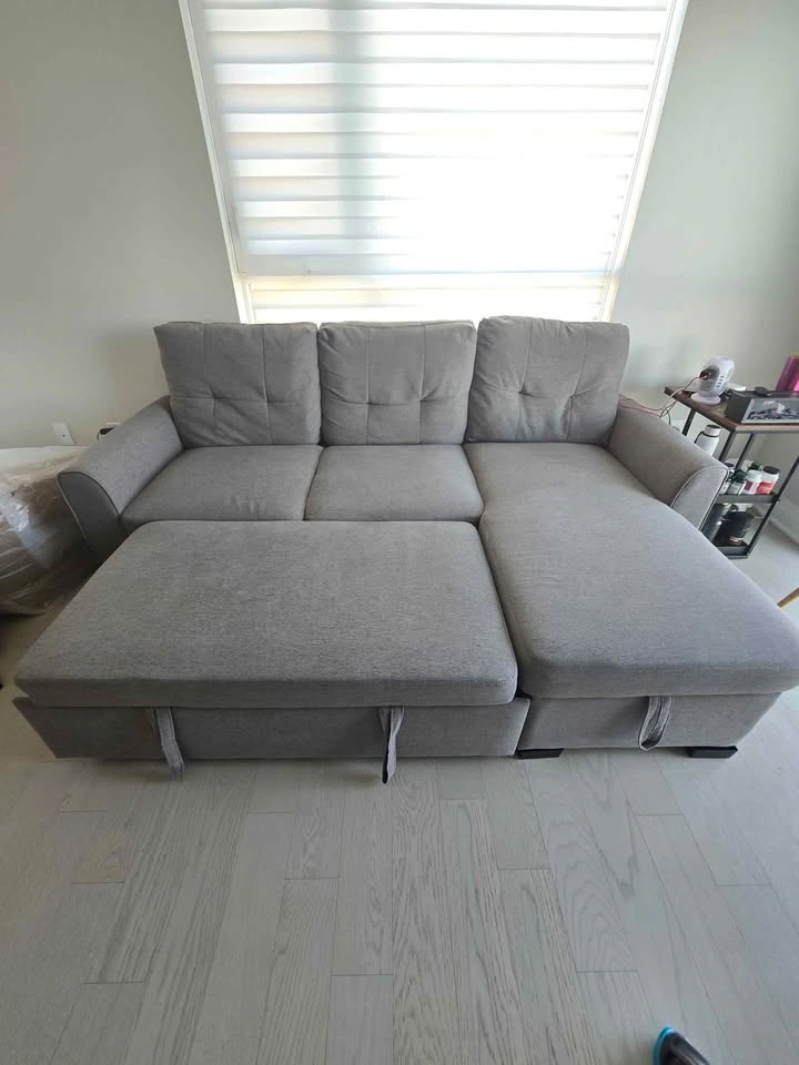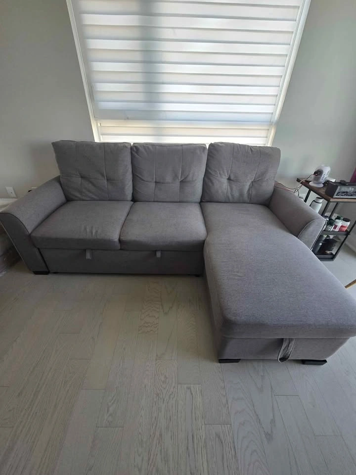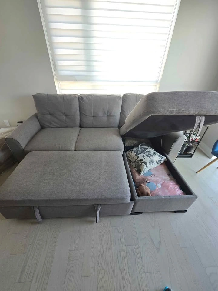 10Pet free and smoke free home. As good as new! We are downsizing and this doesn't fit our new place. Dismantled for ease to carry. Asking $800 OBO. Refer to images for measurements. Purchased from the brick at retail value of $2000 plus taxes. Absolutely nothing wrong functionally, both the sofa and sleeper sections are very comfortable. Have cleaned the sofa and storage already for the next owner :) Needs a van and 2 people to transport. Cash preferred but interac is fine too. Pickup near Britannia and Tremaine in Milton