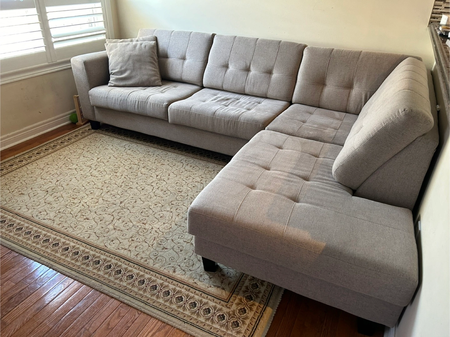 94*MOVING SALE* 9 ft X 7 ft Sectional sofa with bed In excellent condition. Bought from Chesterfield Shop Limited for $2800 Sofa bed has never been used. Mattress is brand new. 2 years left of fabric warranty I wish I could keep this but unfortunately it doesn’t fit in my new home.