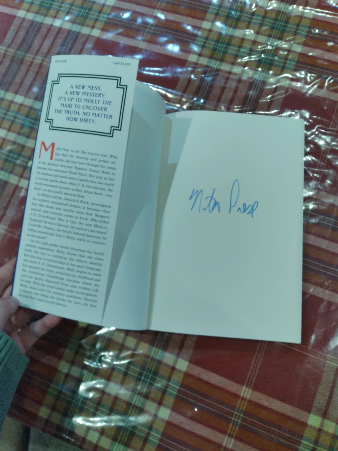 This is "The Mystery Guest A Maid Novel" by Nita Prose. It's a mystery fiction book. The author's signature is present inside the cover.