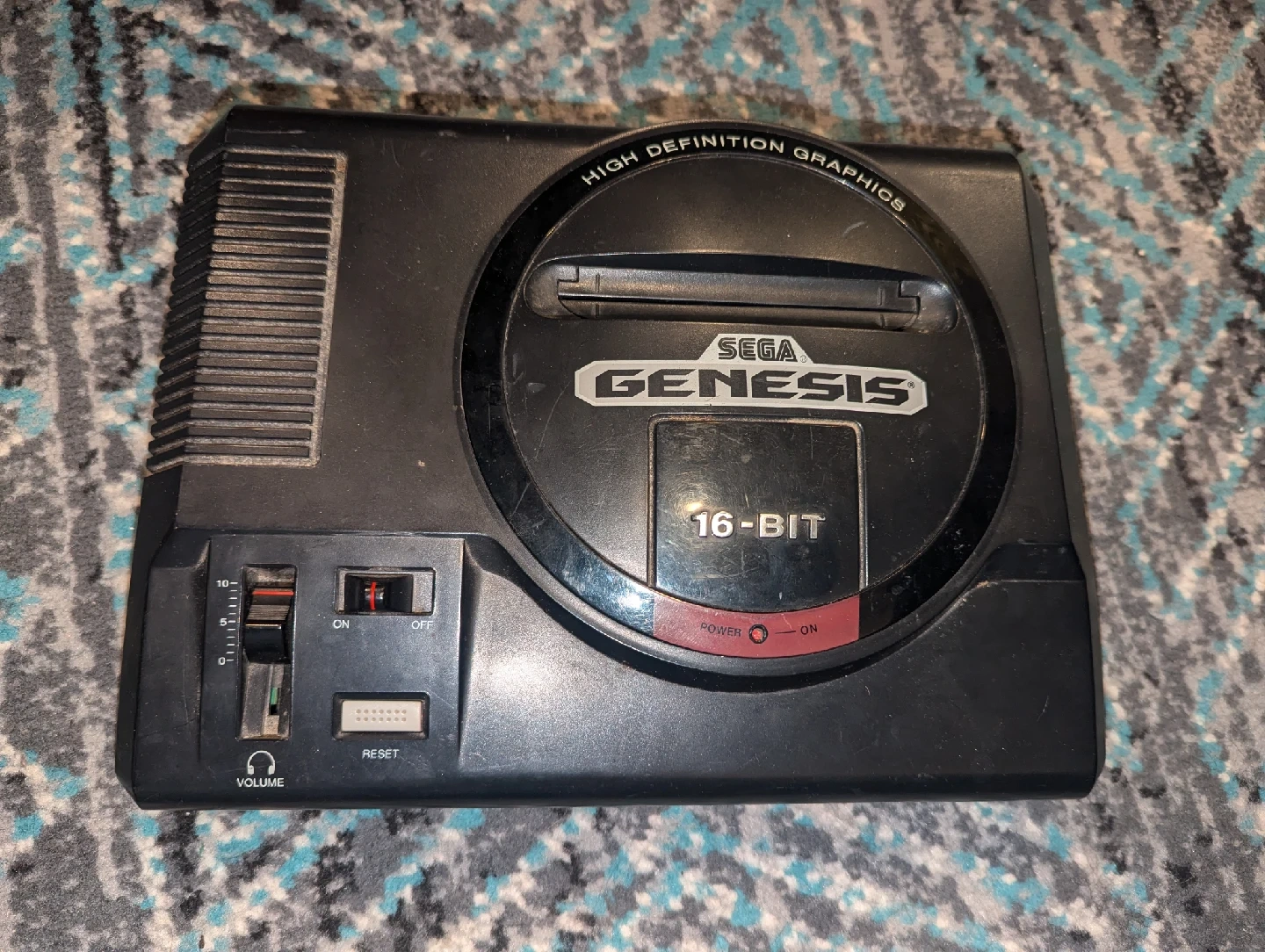 60Selling a Sega Genesis 16-Bit console. It's in used condition with some signs of wear, but it's ready for some retro gaming fun! It features high definition graphics for its time, and the classic volume slider and reset button are present and functional. Power on and enjoy!
