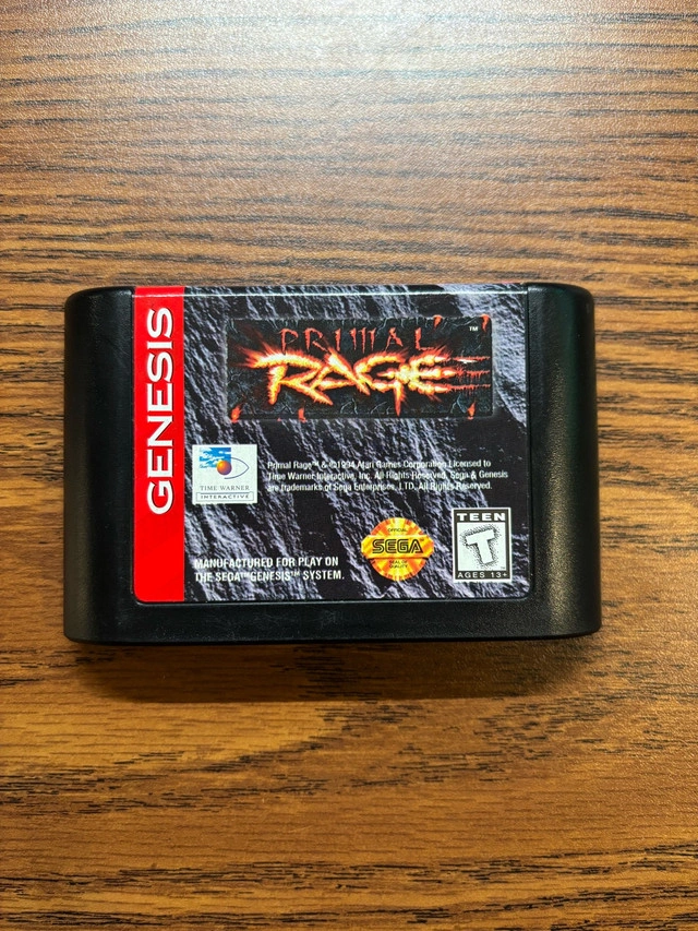 5Relive the 90s with this Sega Genesis Primal Rage game cartridge! This fighting game lets you control powerful prehistoric beasts in a battle for survival. It's a blast from the past ready to plug and play into your console.