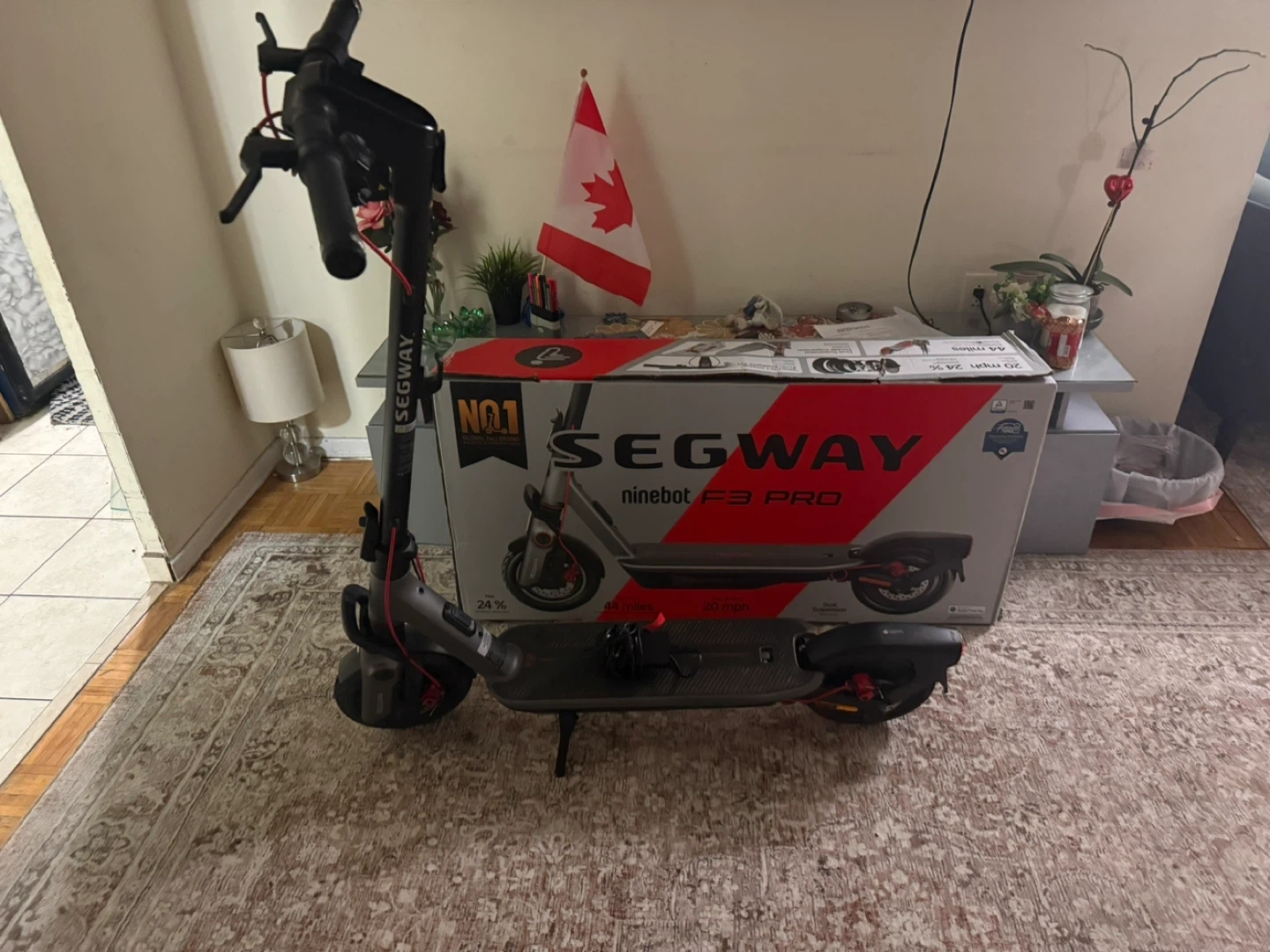 60Selling my Segway F3 Pro electric scooter in excellent condition. It’s barely been used, never crashed, and the battery still holds a full charge. This scooter is fast, smooth, and reliable — perfect for commuting or weekend rides. It goes up to 32 km/h with a range of up to 70 km, powered by a 1200 W motor and equipped with front hydraulic and rear suspension for a comfortable ride. The 10-inch self-sealing tires handle bumps and rough pavement with ease. Comes with the original box, warranty, and I will include a lock for it. It’s ready to ride and feels just like new. Only selling because my kids decided they want a PC instead. Asking $920, open to offers down to $860.