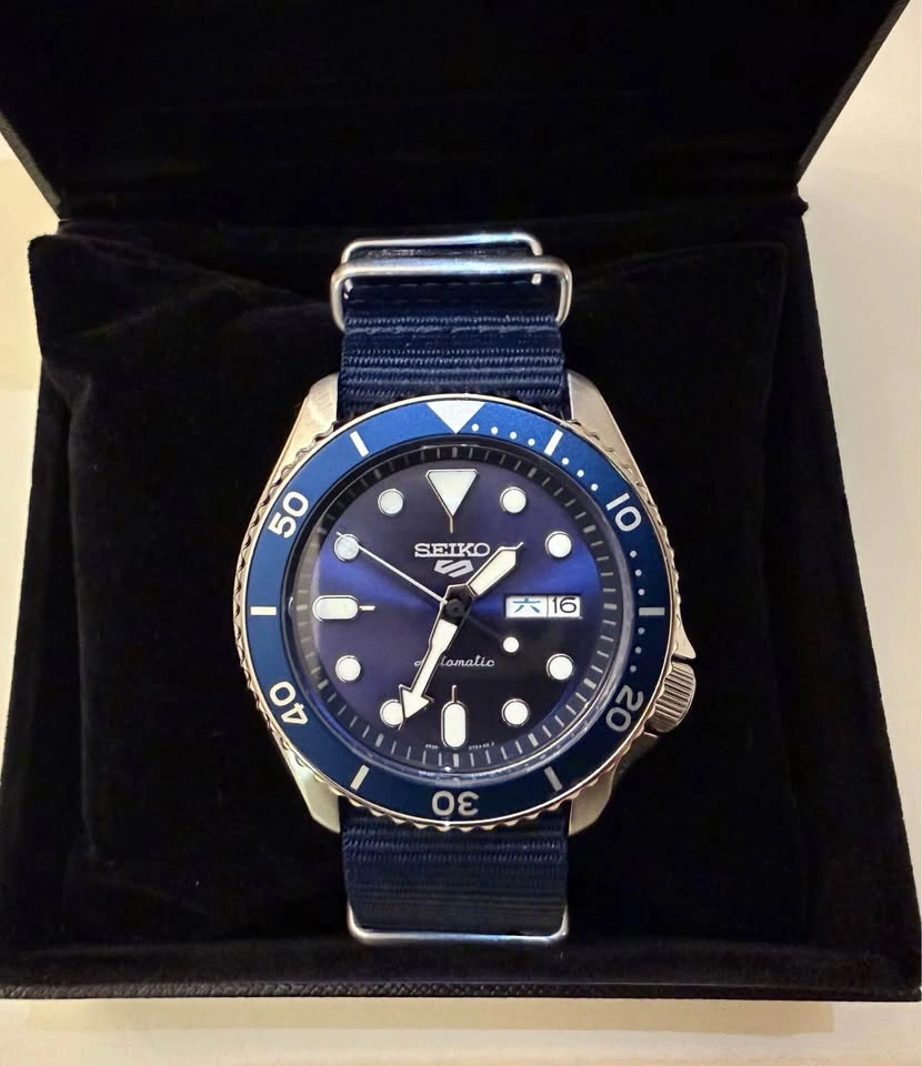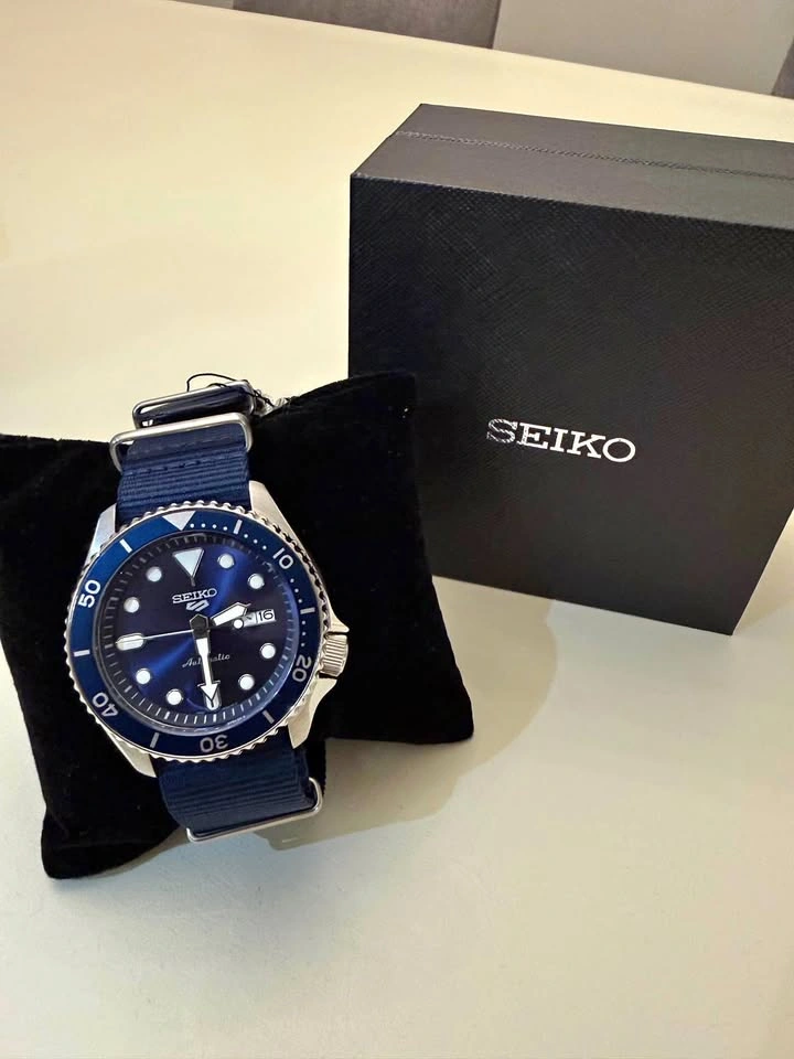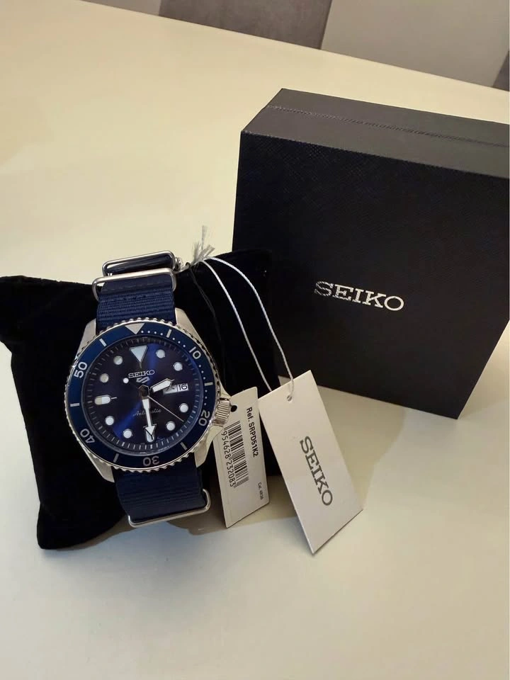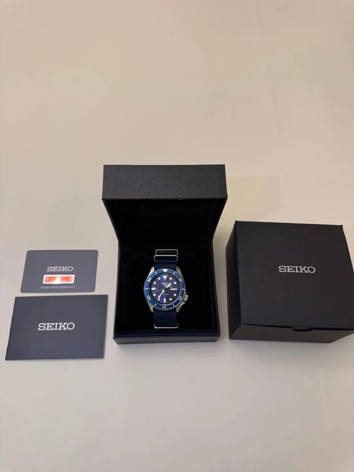60Selling a Seiko 5 Sports Automatic SRPD51K2 – automatic movement with a striking blue sunburst dial and silver-tone stainless steel bracelet. Sporty yet refined, with Seiko’s signature reliability and everyday wearability. SPECIFICATION: Band Colour: Silver Band Material: Stainless Steel Band Width: 22mm Dial Colour: Blue Case Width: 42.5mm Case Material: Stainless Steel Watch Shape: Round Crystal: Hardlex Movement Type: Automatic (Caliber 4R36 – 41-hour power reserve, day/date display) Water Resistant: 100M Case Thickness: 13.4mm Brand New In Original Packaging (All Authentic Watches) $325 OBO Let me know if you're interested!