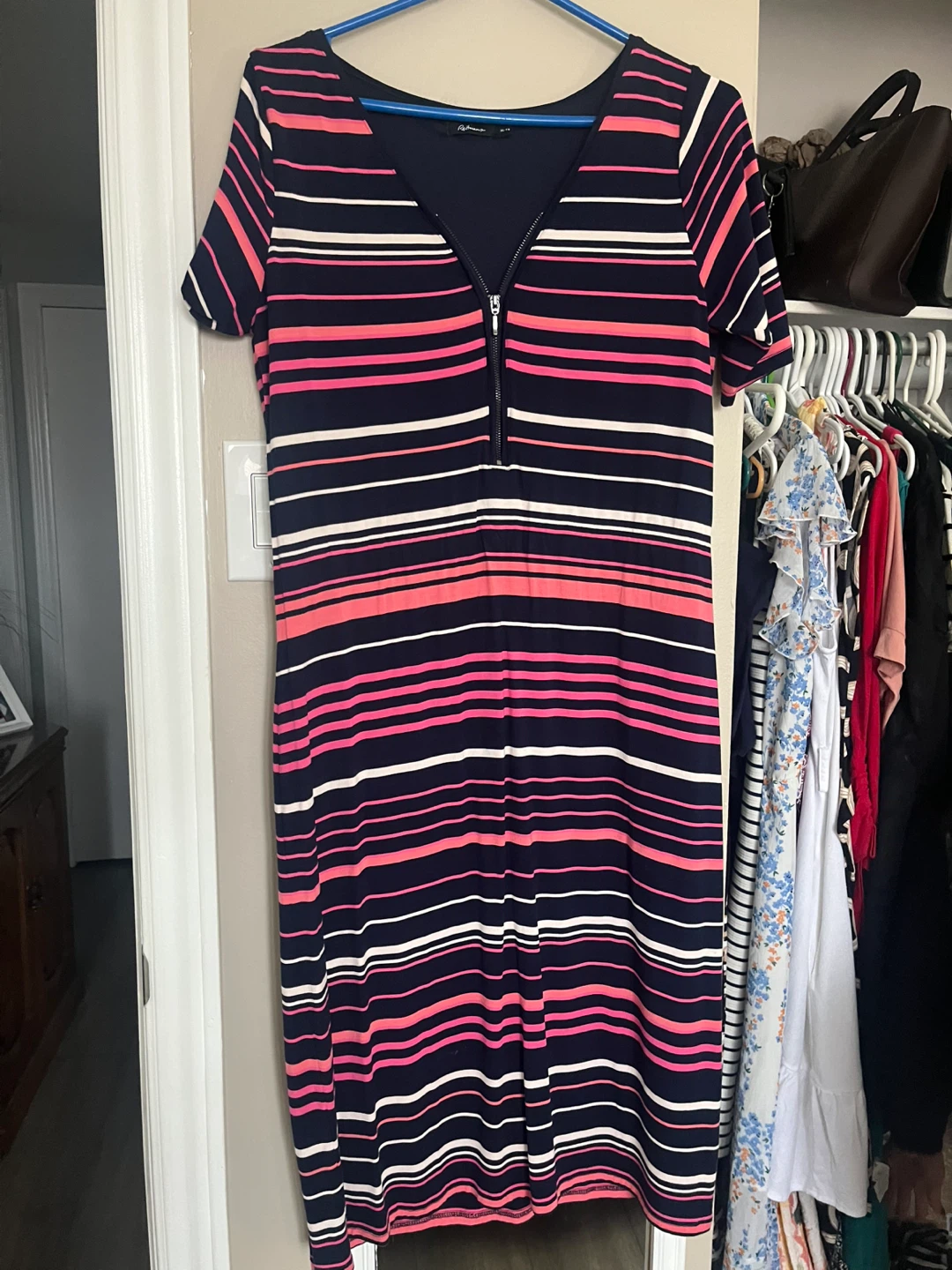 A lovely striped dress from Reitmans in size XL! The dress features a zipper detail and a flattering fit. Perfect for a casual day out or a summer gathering