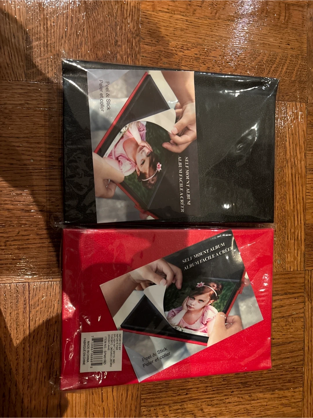 57Five dollars for both I have two self-mount photo albums for sale. One is red and the other is black. They are peel & stick albums, making it easy to add your photos. Imported by Splash Int'l Mktg. Inc. Made in China