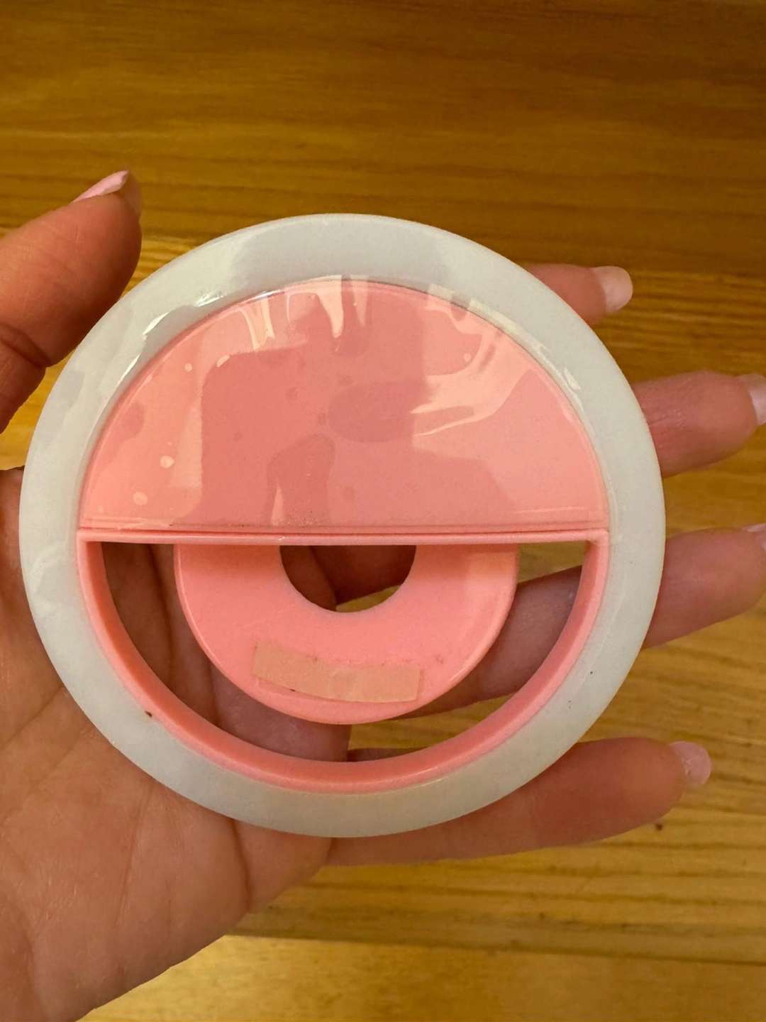 77Pink and white ring light. Includes a clip and USB charger. A ring light can be a great tool to improve your photos and videos, helping you feel calmer and more confident in your appearance.