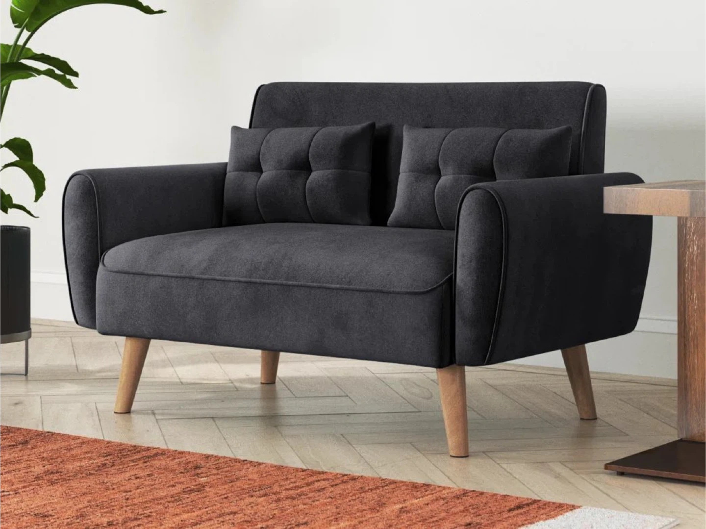 136Selling a dark grey loveseat sofa in great condition! It features a classic design with comfortable cushions and wooden legs. Perfect for a small space or apartment 30.31'' H X 49'' W X 25.2'' D
