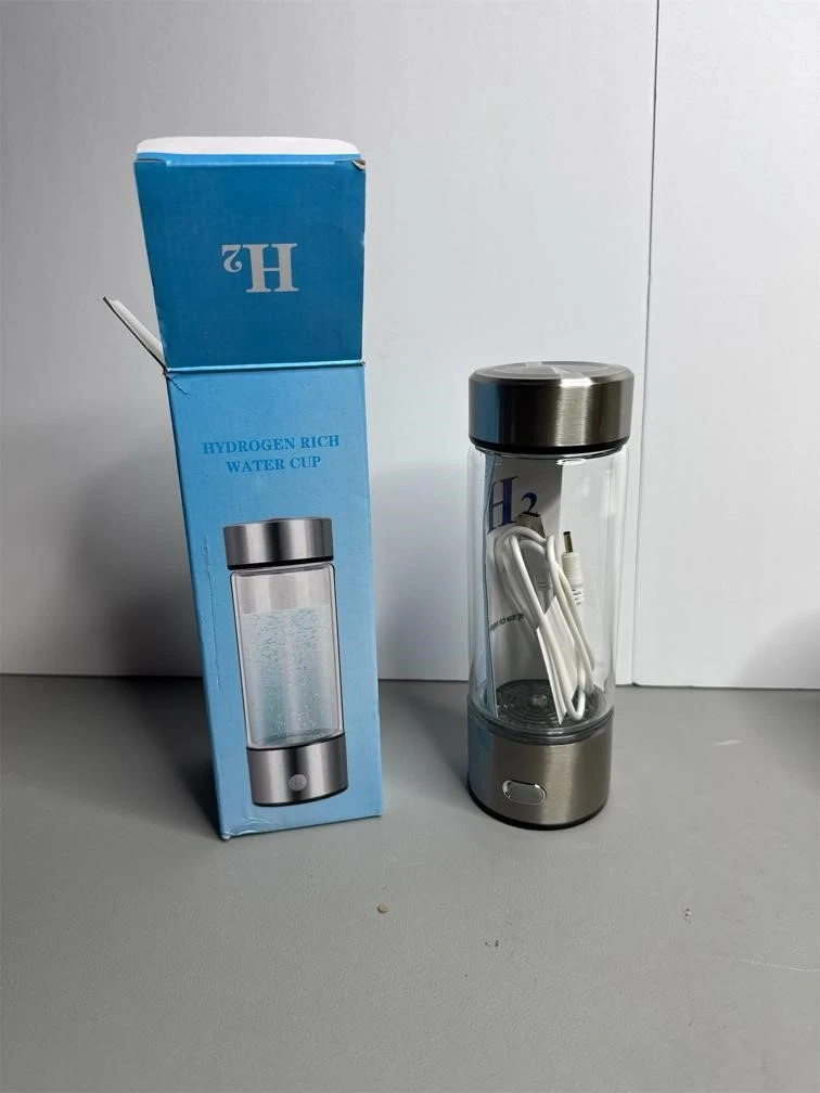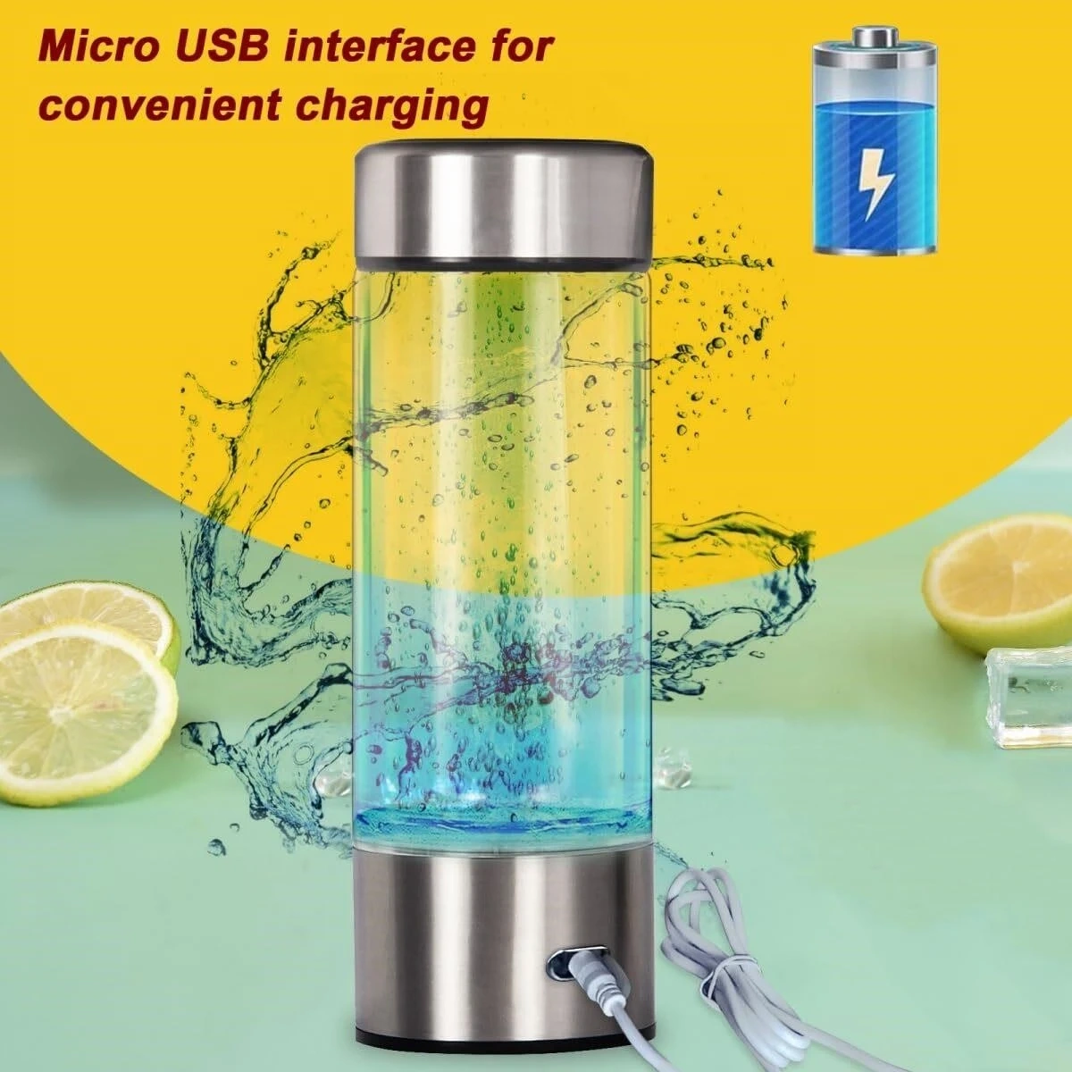 This hydrogen rich water cup uses a Micro USB interface for convenient charging. It's made with glass and stainless steel components. It's convenient to travel with. This cup is great for anyone looking to make hydrogen-infused water on the go!