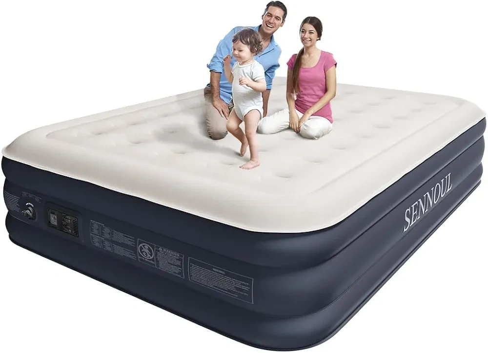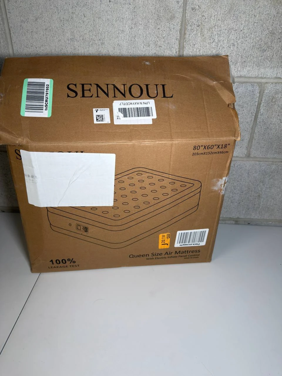 113‼️ All sales are final – no returns 💵 Cash only 🚚 Free Delivery In GTA over 50$ Condition: NEW SENNOUL 18" Queen Air Mattress Queen-size air mattress (203 × 152 × 46 cm) with built-in pump for quick 2-minute inflation and deflation. Features durable coil beam construction supporting up to 650 lbs (293 kg). Soft flocked top adds comfort while the waterproof, puncture-resistant PVC base ensures stability and prevents leaks. Ideal for home use or guests, offering firm and comfortable rest.