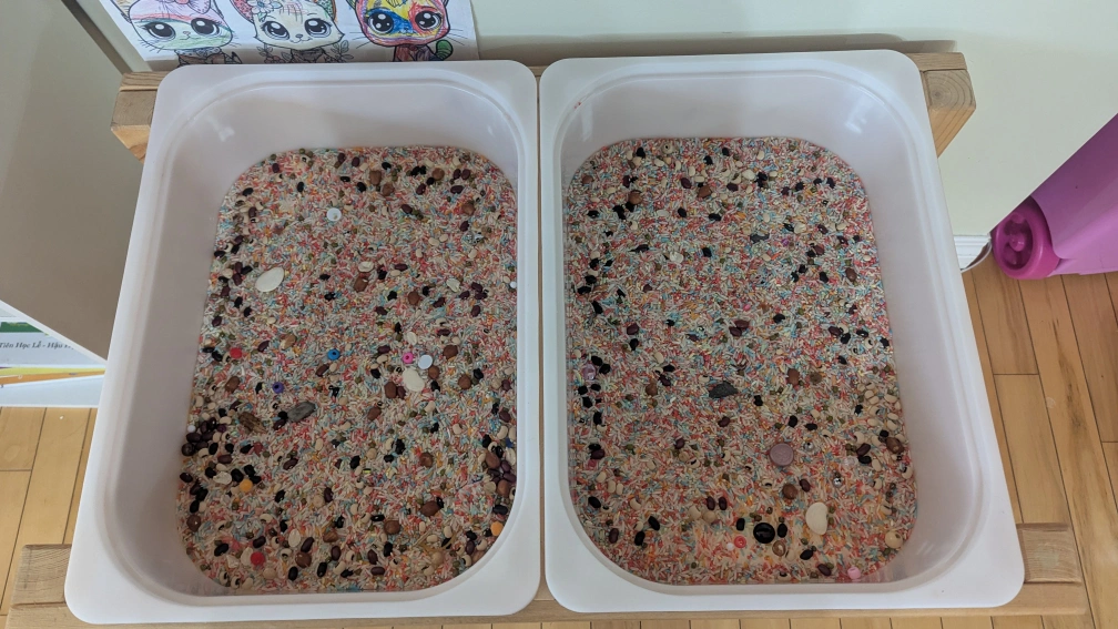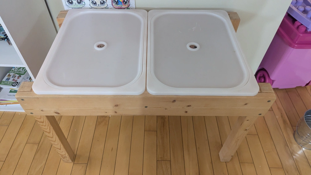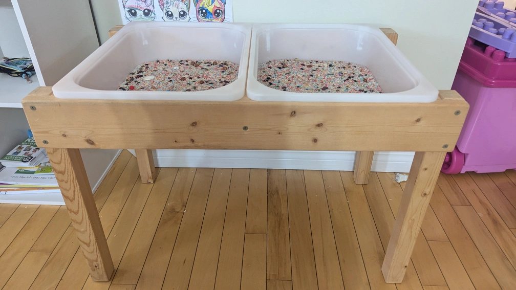 Selling a DIY sensory table that comes with two bins + homemade colored rice (will be in Ziploc bag ). 27L x 17W x 18H inches It's perfect for little ones to explore different textures and materials, providing years of fun. The table is sturdy and well-made, ready for lots of fun and creative play. Contactless pick up in Cougar Ridge SW.