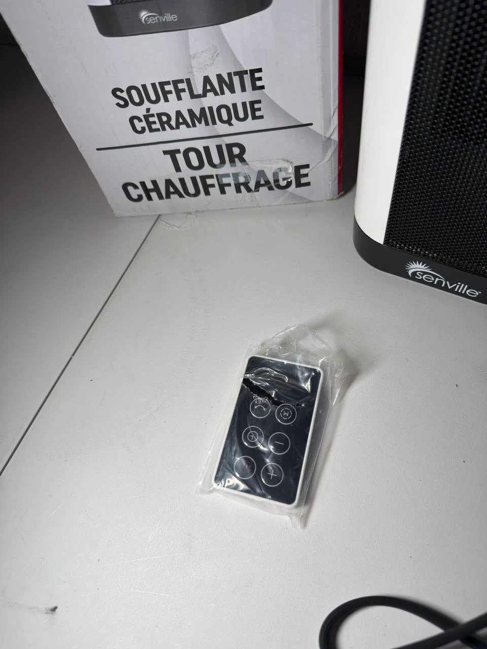 113‼️ All sales are final – no returns 💵 Cash only 🚚 Free Delivery In GTA over 50$ Condition: NEW Senville Tower Space Heater – 4 Modes, Eco & Timer, Remote Control Compact and versatile electric space heater with High, Low, Eco, and Fan-Only modes. Features a digital thermostat, 24-hour timer, and remote for effortless control. Can be used vertically or horizontally for space-saving setup. Provides even heat with internal swing function and overheat protection for safe, energy-efficient warmth.