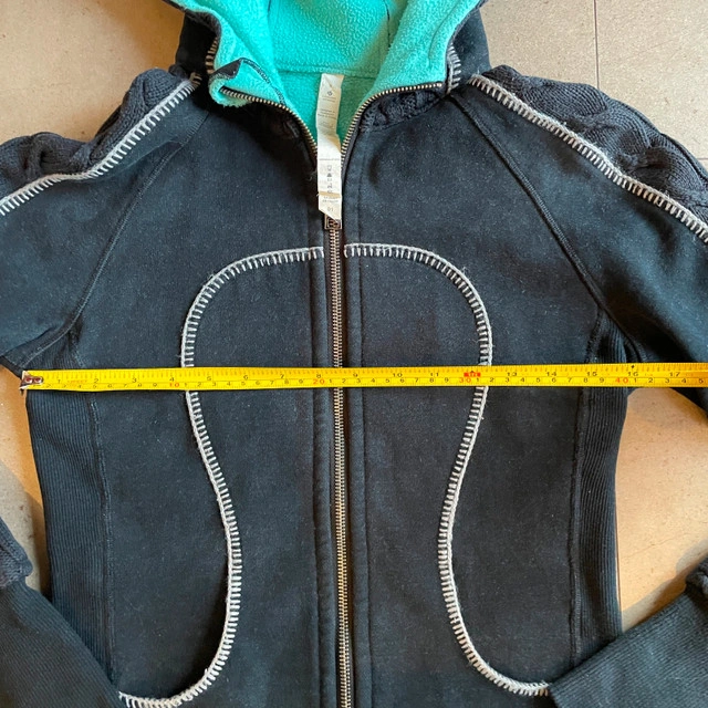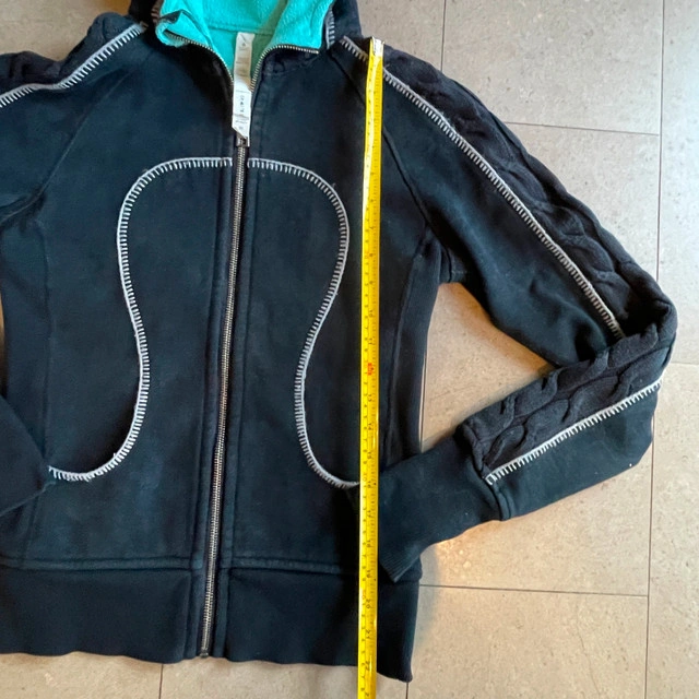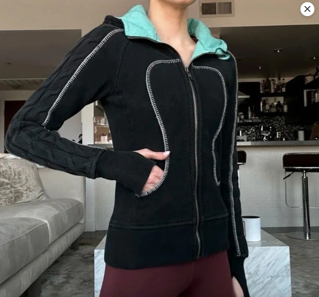 Selling a Lululemon full zip hoodie - special edition cable knit Scuba Hoodie-Size 2. Gently used. Thumbholes and Cotton Fleece fabric. Ribbing in the waistband, cuffs and under the arms provide additional stretch. Thumbholes and snug cuffs keep sleeves down. Pictures of woman wearing the hoodie are stock photos and only posted to show how it fits. Measurements lying flat: Pit to pit: 16.5" Length: 22" Asking $50. Available for pick up in the Broadview/Danforth area. Contact-free porch pick up. Check out my other great stuff!