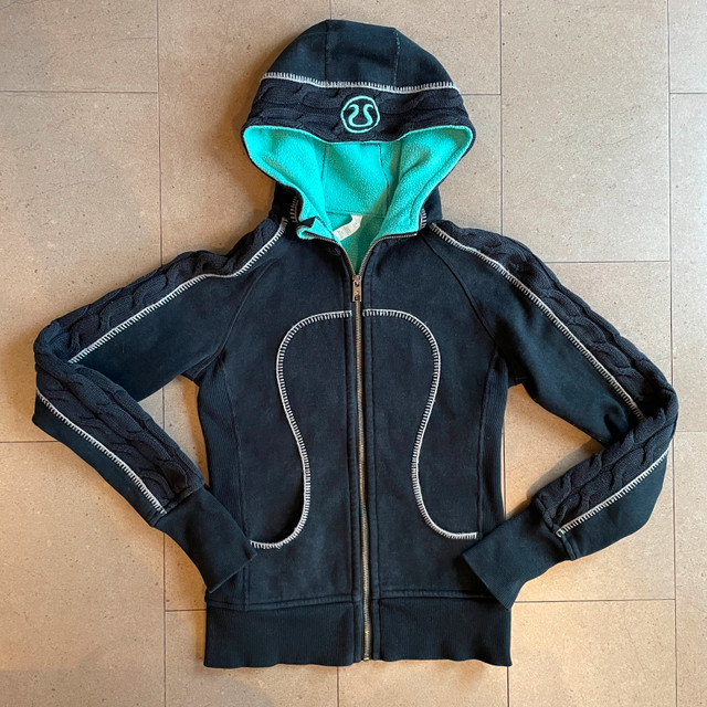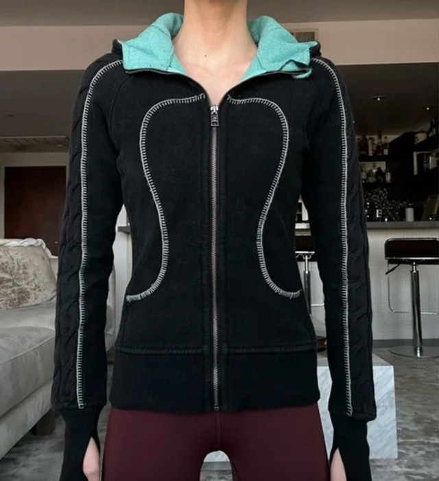 Selling a Lululemon full zip hoodie - special edition cable knit Scuba Hoodie-Size 2. Gently used. Thumbholes and Cotton Fleece fabric. Ribbing in the waistband, cuffs and under the arms provide additional stretch. Thumbholes and snug cuffs keep sleeves down. Pictures of woman wearing the hoodie are stock photos and only posted to show how it fits. Measurements lying flat: Pit to pit: 16.5" Length: 22" Asking $50. Available for pick up in the Broadview/Danforth area. Contact-free porch pick up. Check out my other great stuff!