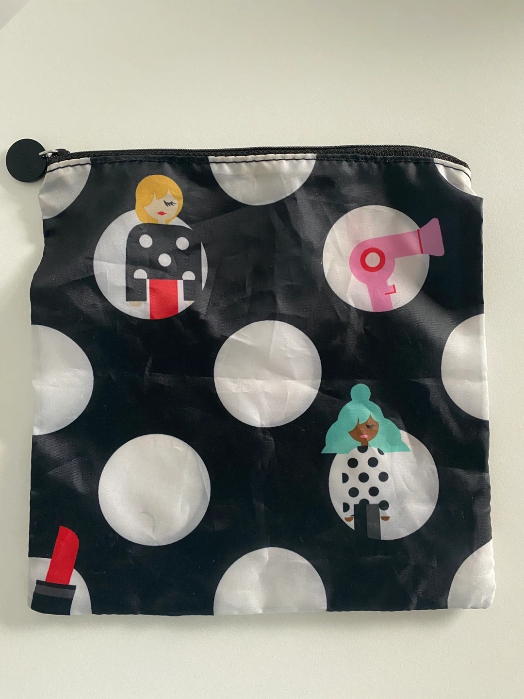 Cute Sephora cosmetic bag with a fun polka dot , character and makeup designs! Perfect for storing your makeup and beauty essentials on the go or can also be used as gift bag!