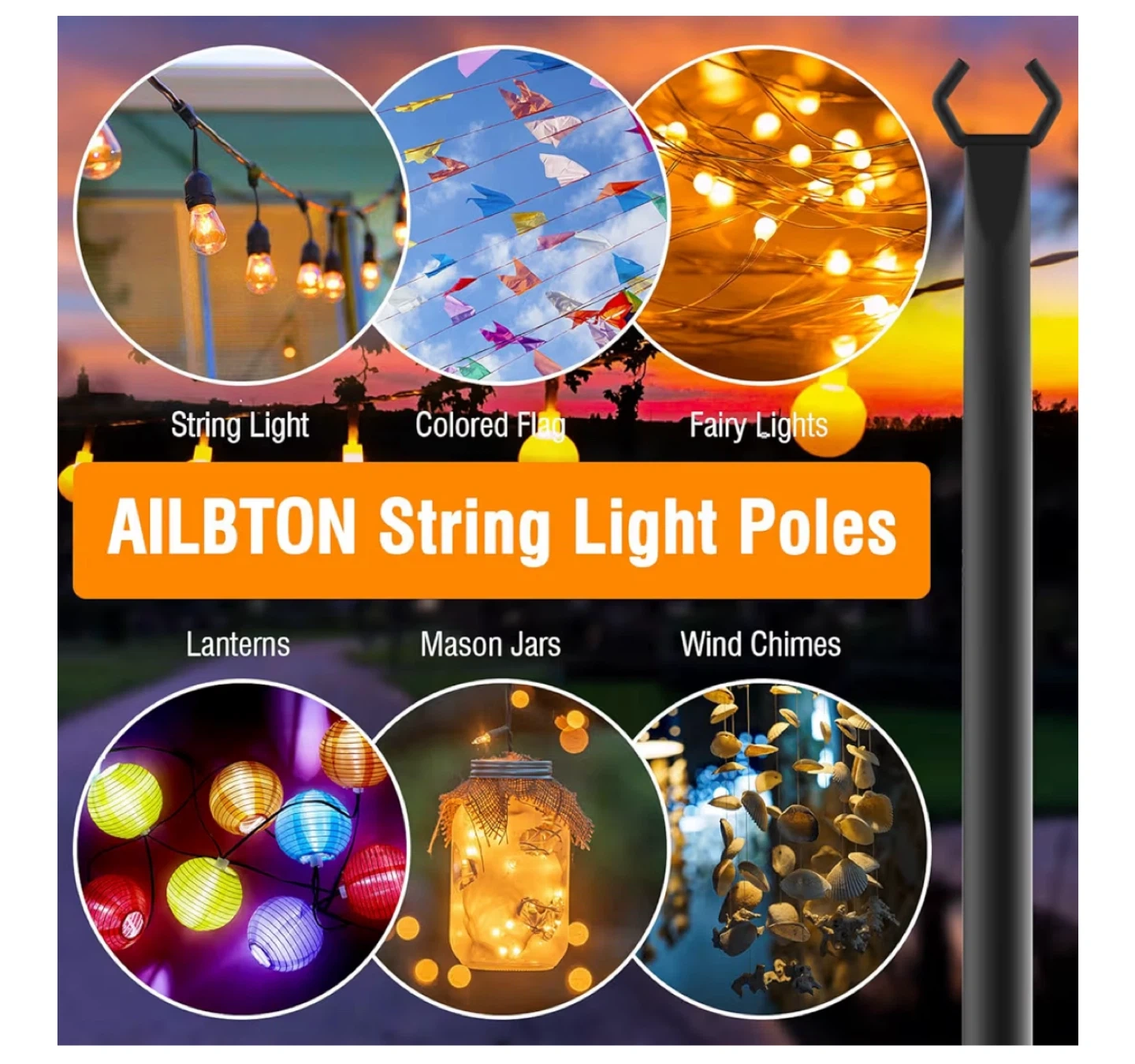 Get ready to brighten up your outdoor space with these string light poles! These poles are specially designed for the outdoors, helping to create a lovely atmosphere for weddings, Christmas, parties, or just a cozy evening in your backyard. They're 10FT tall and come with 2 poles. Easy to install and weatherproof.