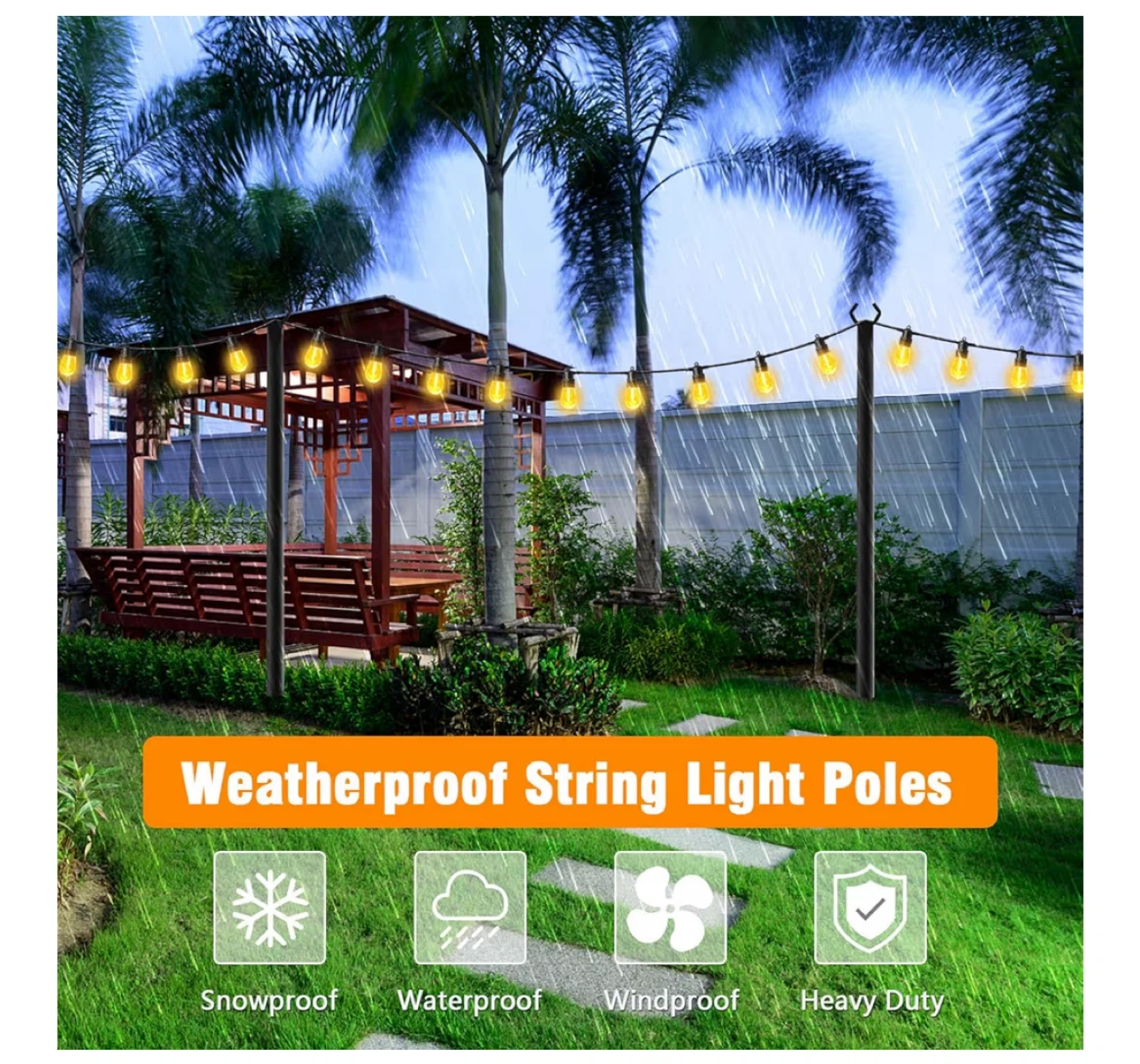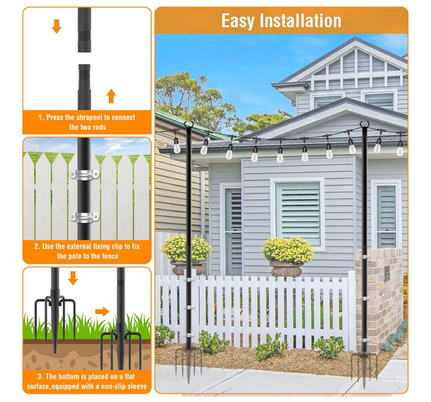 Get ready to brighten up your outdoor space with these string light poles! These poles are specially designed for the outdoors, helping to create a lovely atmosphere for weddings, Christmas, parties, or just a cozy evening in your backyard. They're 10FT tall and come with 2 poles. Easy to install and weatherproof.