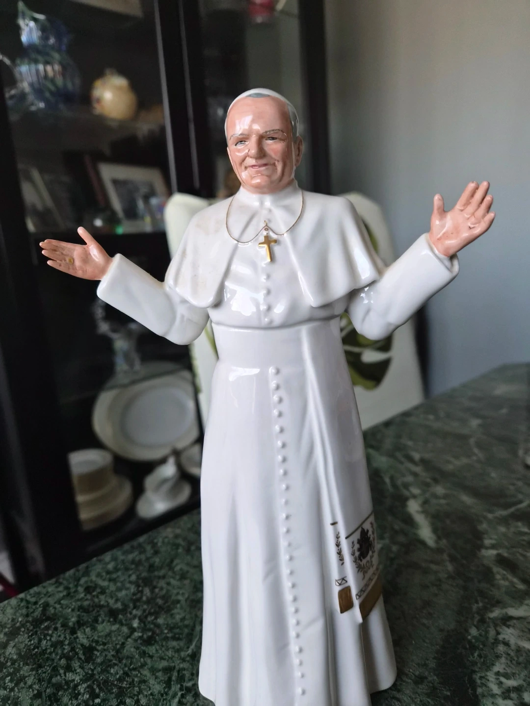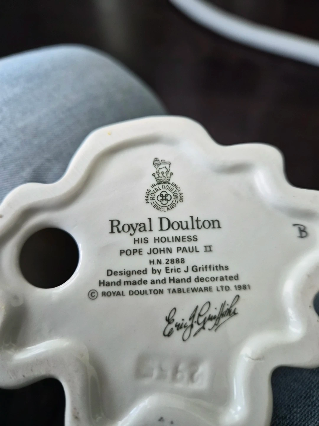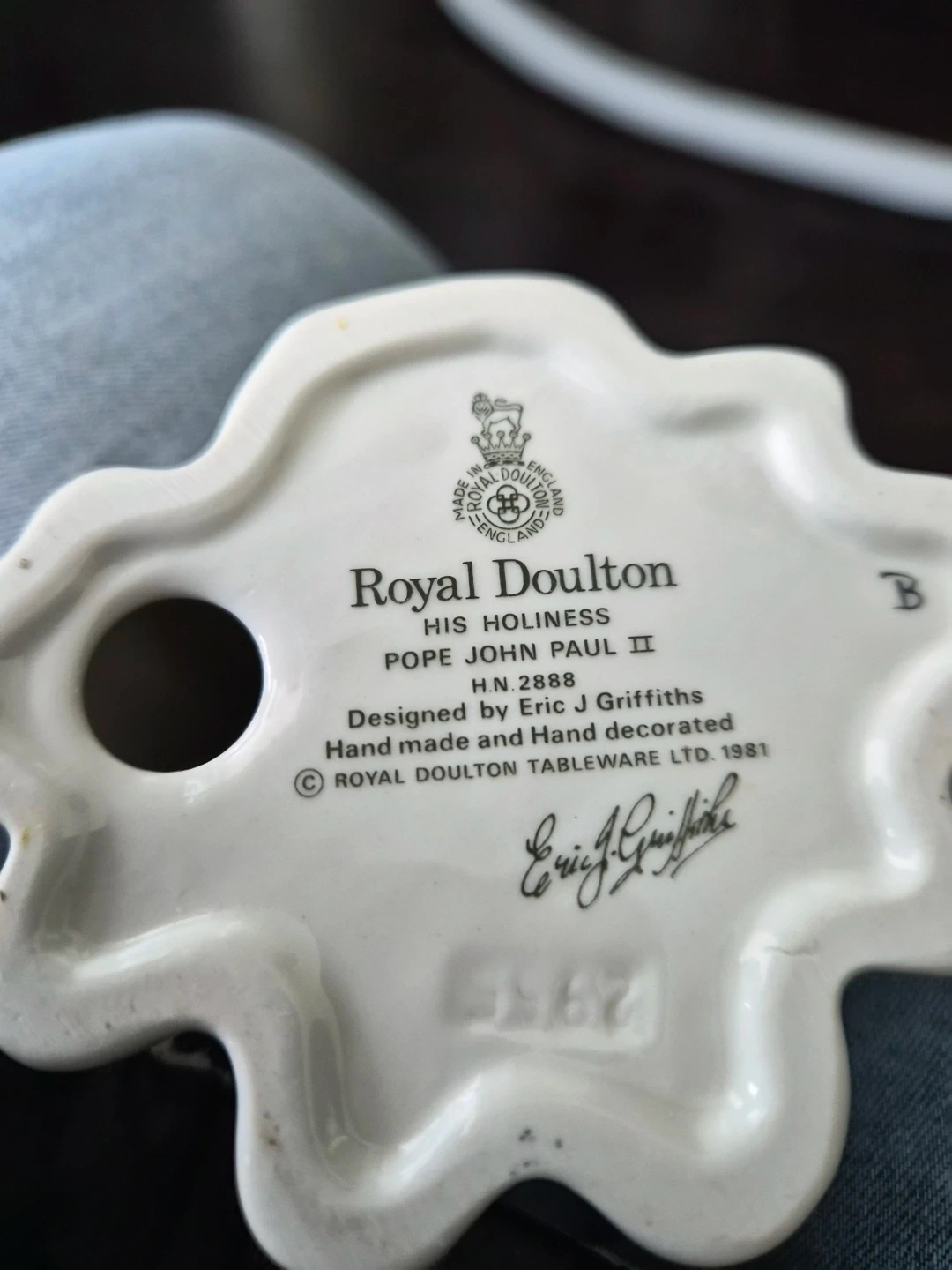This is a Royal Doulton "His Holiness Pope John Paul II" figurine. It's H.N. 2888, designed by Eric J Griffiths and hand-made, hand-decorated. Dated 1981, it's a lovely piece for collectors.