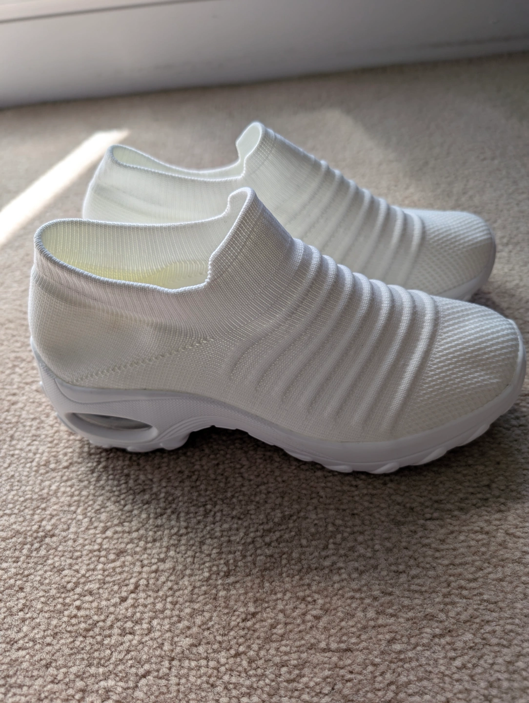 New White Knit Slip-On Sneakers