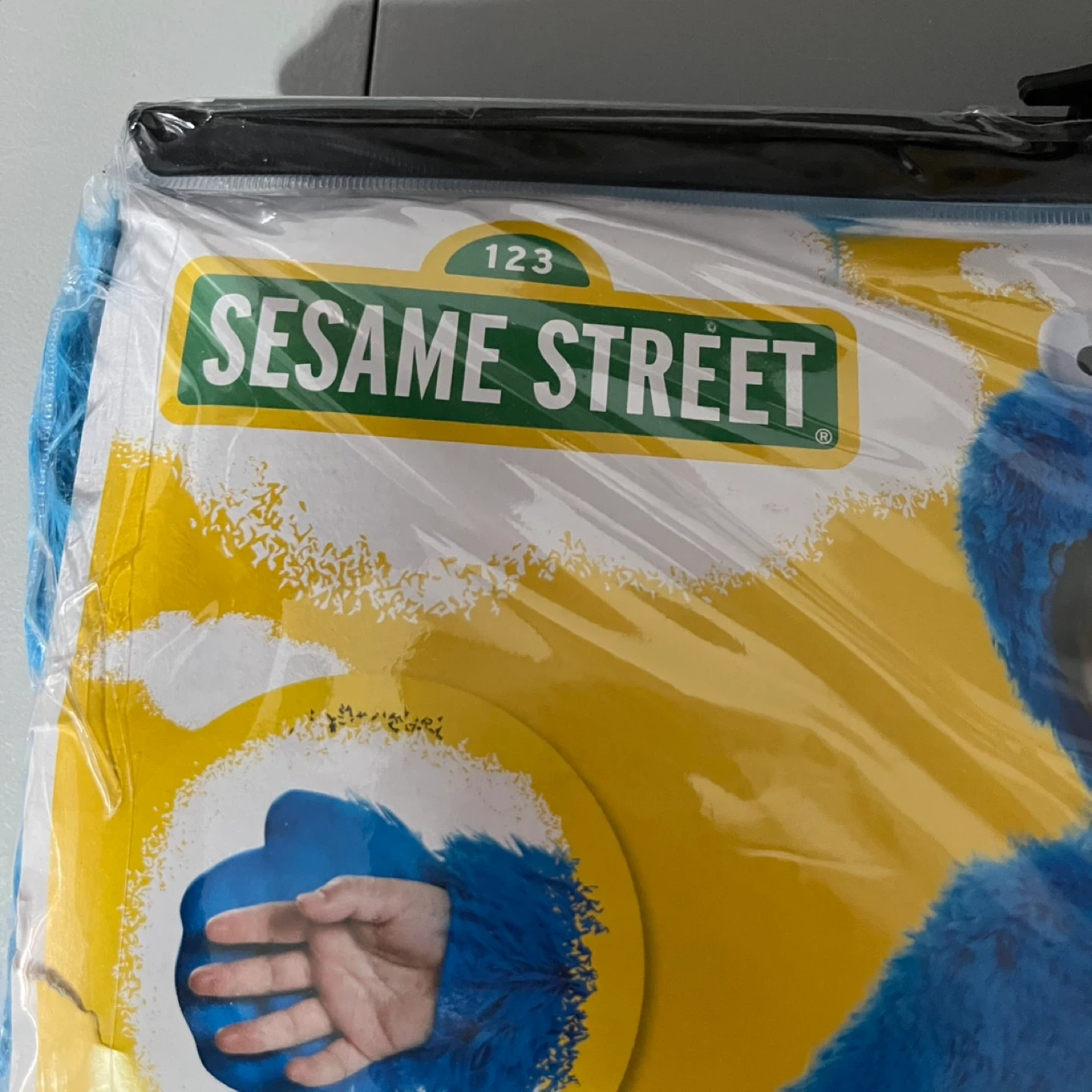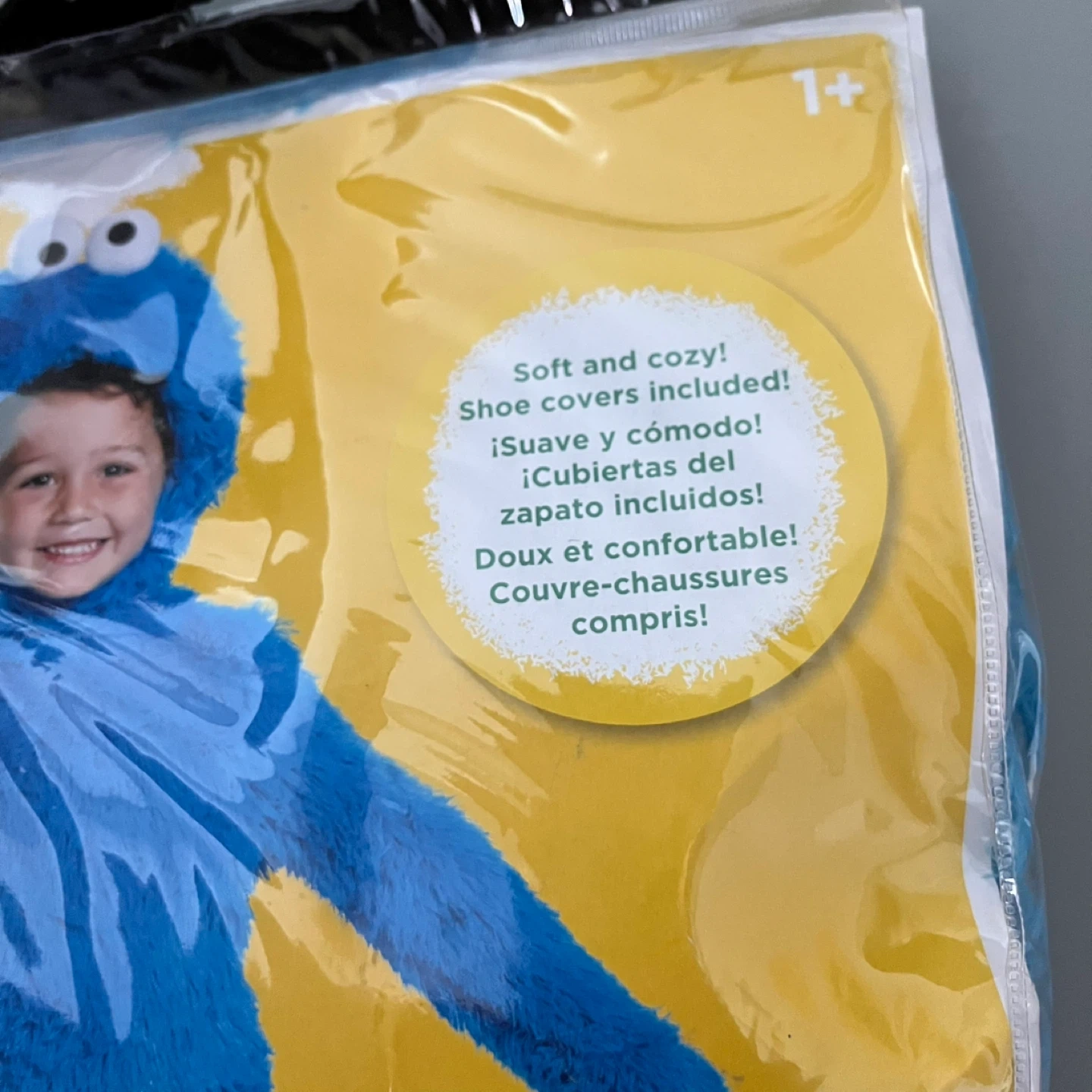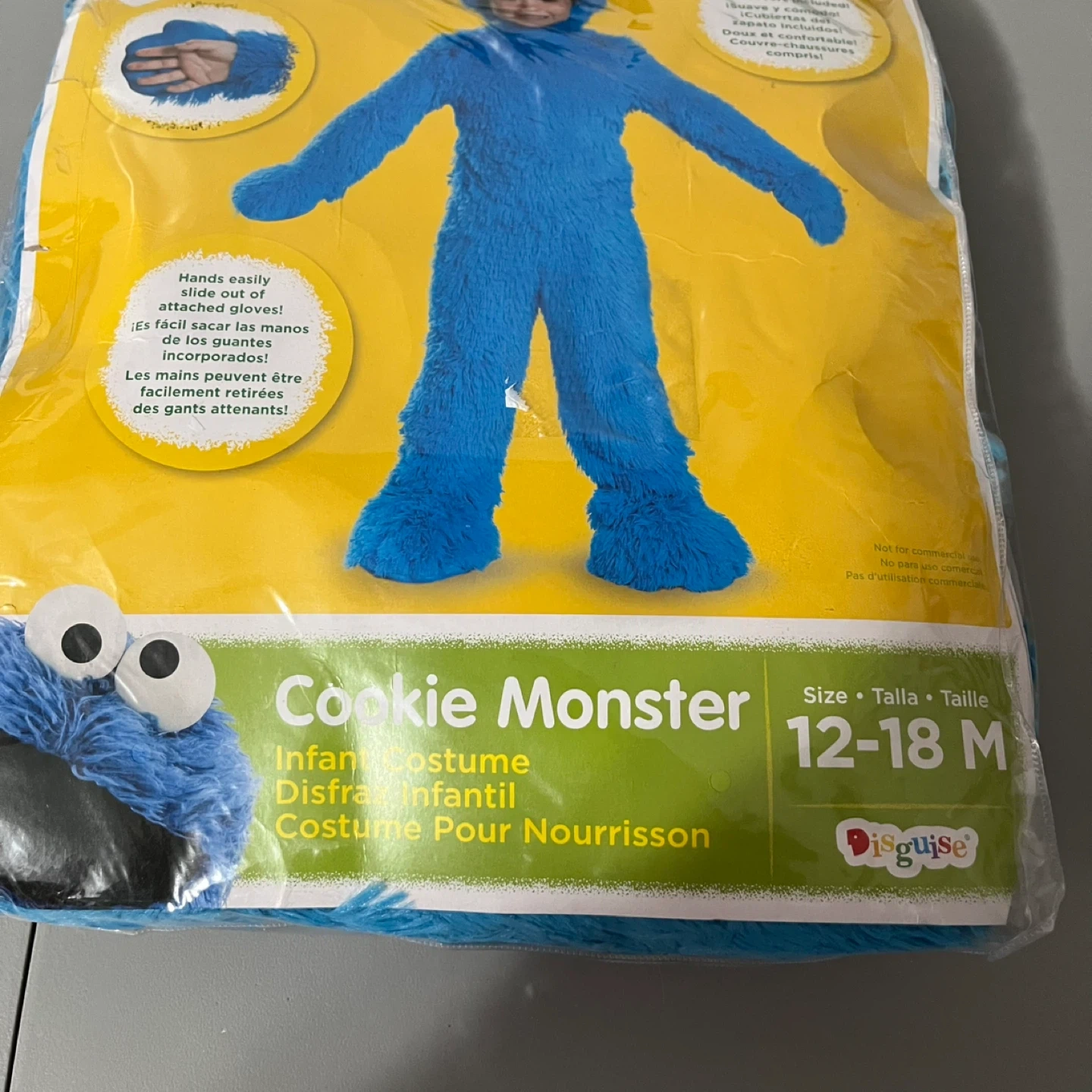 This is a brand new Cookie Monster infant costume from Sesame Street! It's a size 12-18M, perfect for your little one. The costume is soft and cozy, and even includes shoe covers!