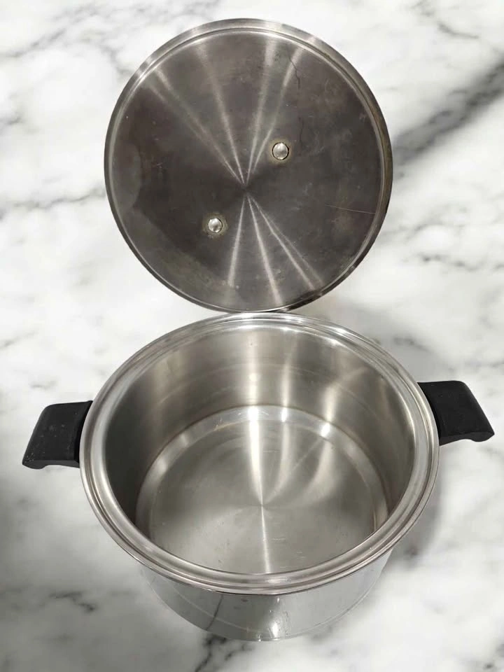 86Those Cook pot and pan shows some signs of wear 100% functional . The lid has no chips or cracks and features a steam vent. The metal handle is firmly attached and makes this pan oven compatible. The dimensions can be found in the video . Please reach out with any questions.