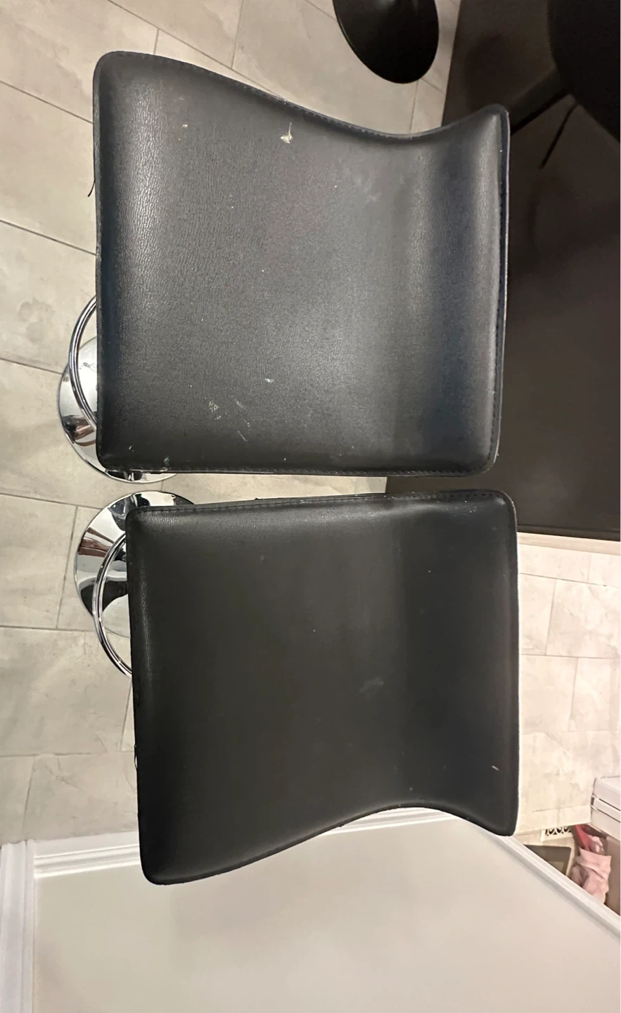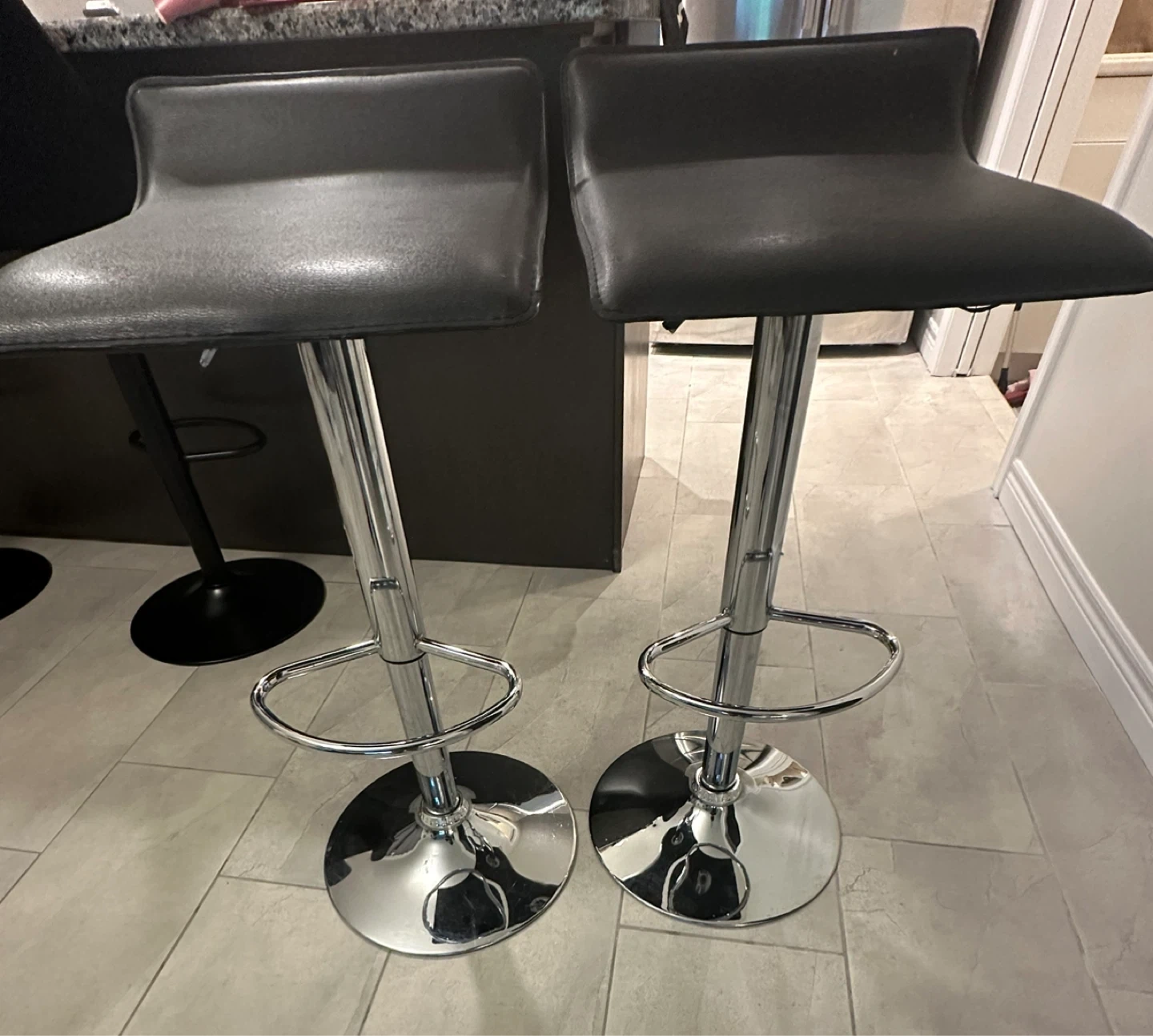 Mocha Leather Bar Stools with Black Metal Legs x4