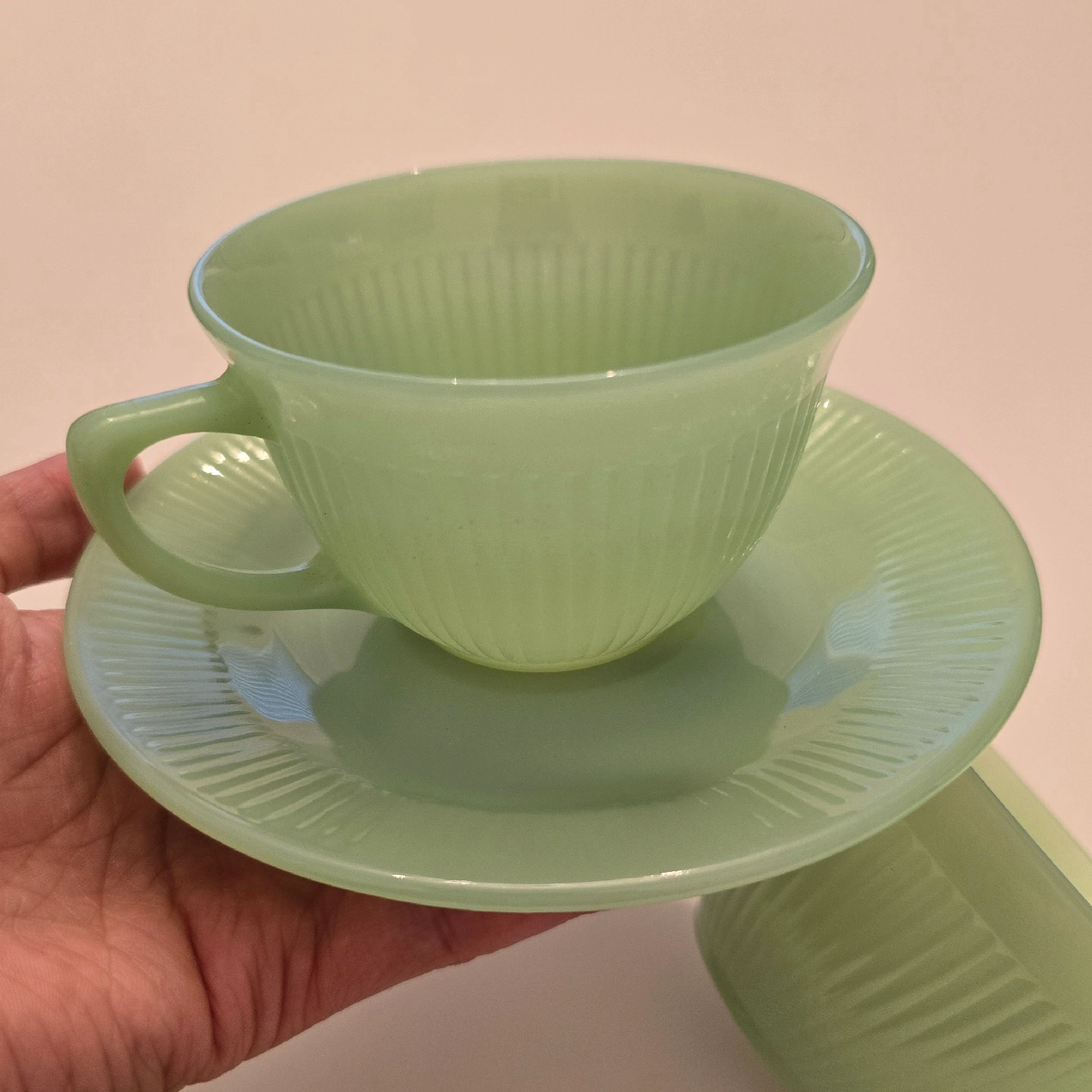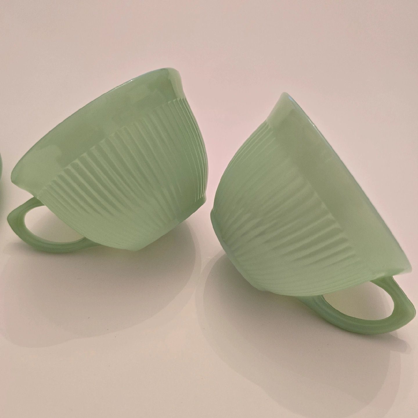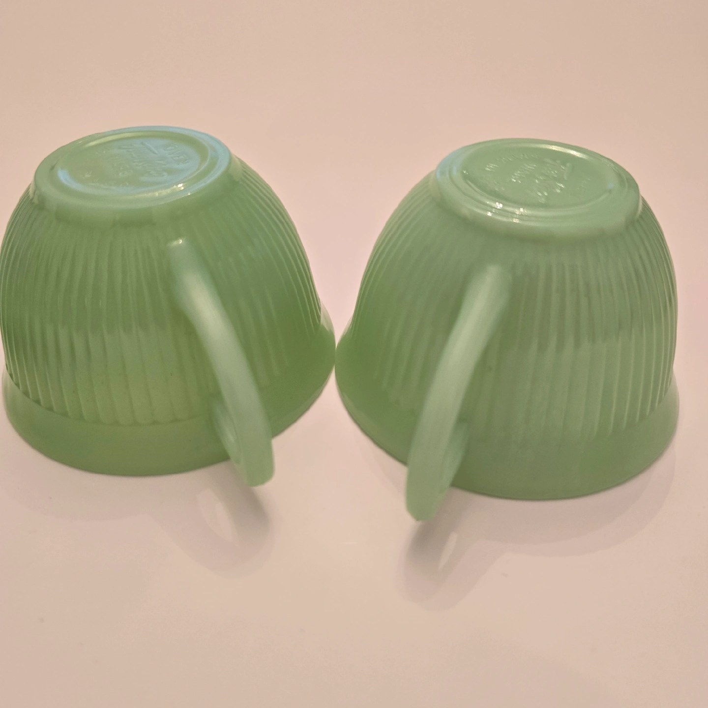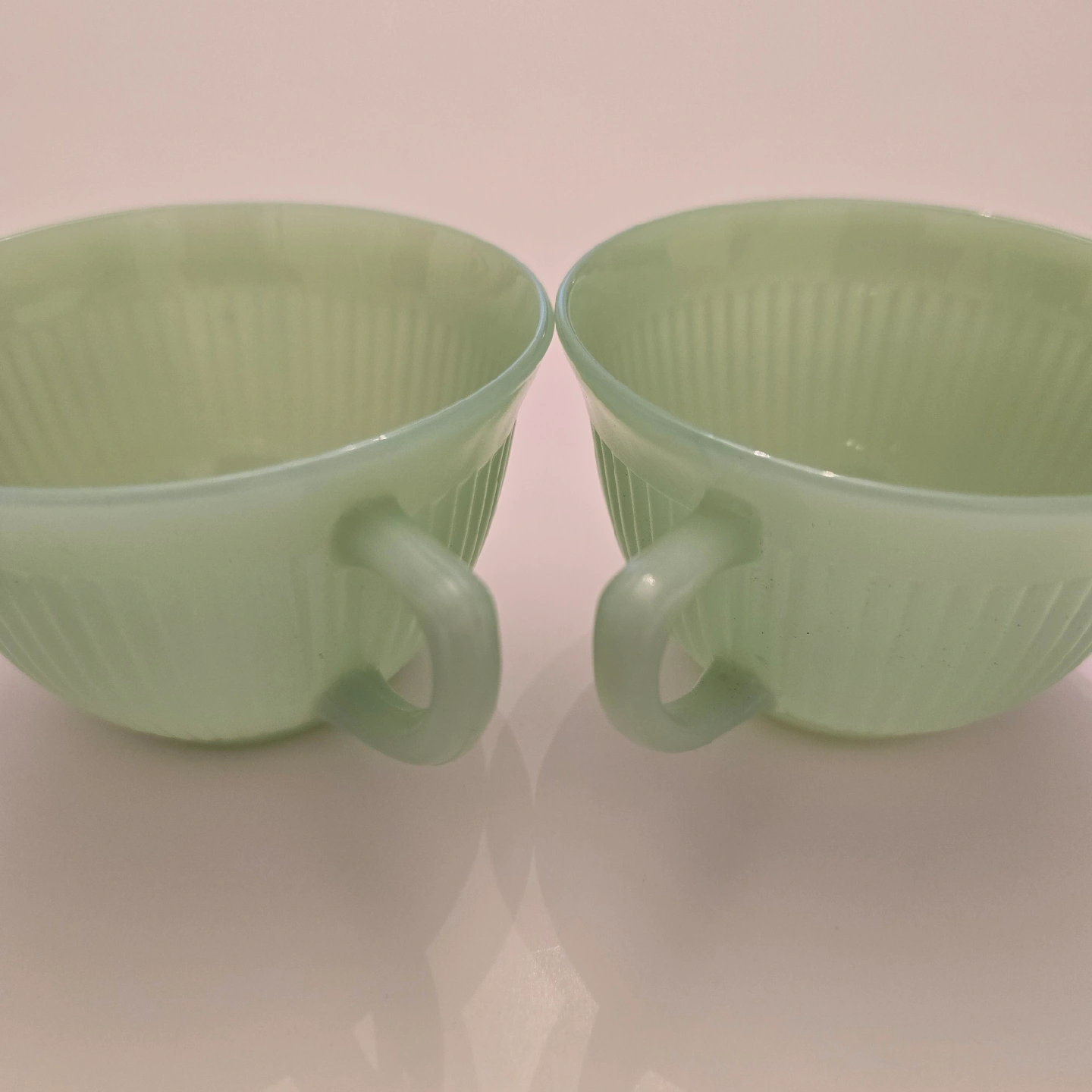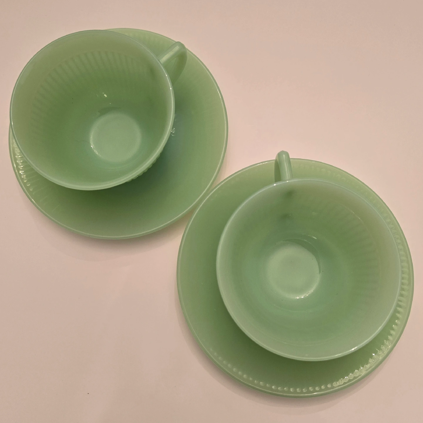 Set of 2 Fireking Jadeite Teacups and Saucers
