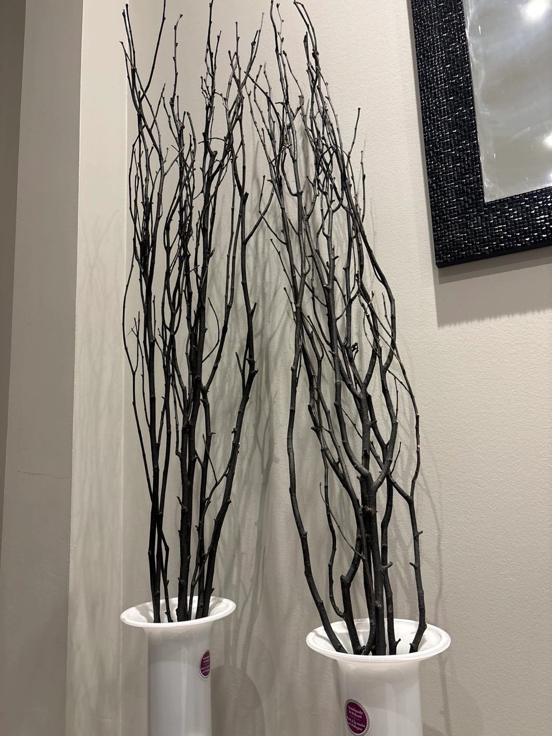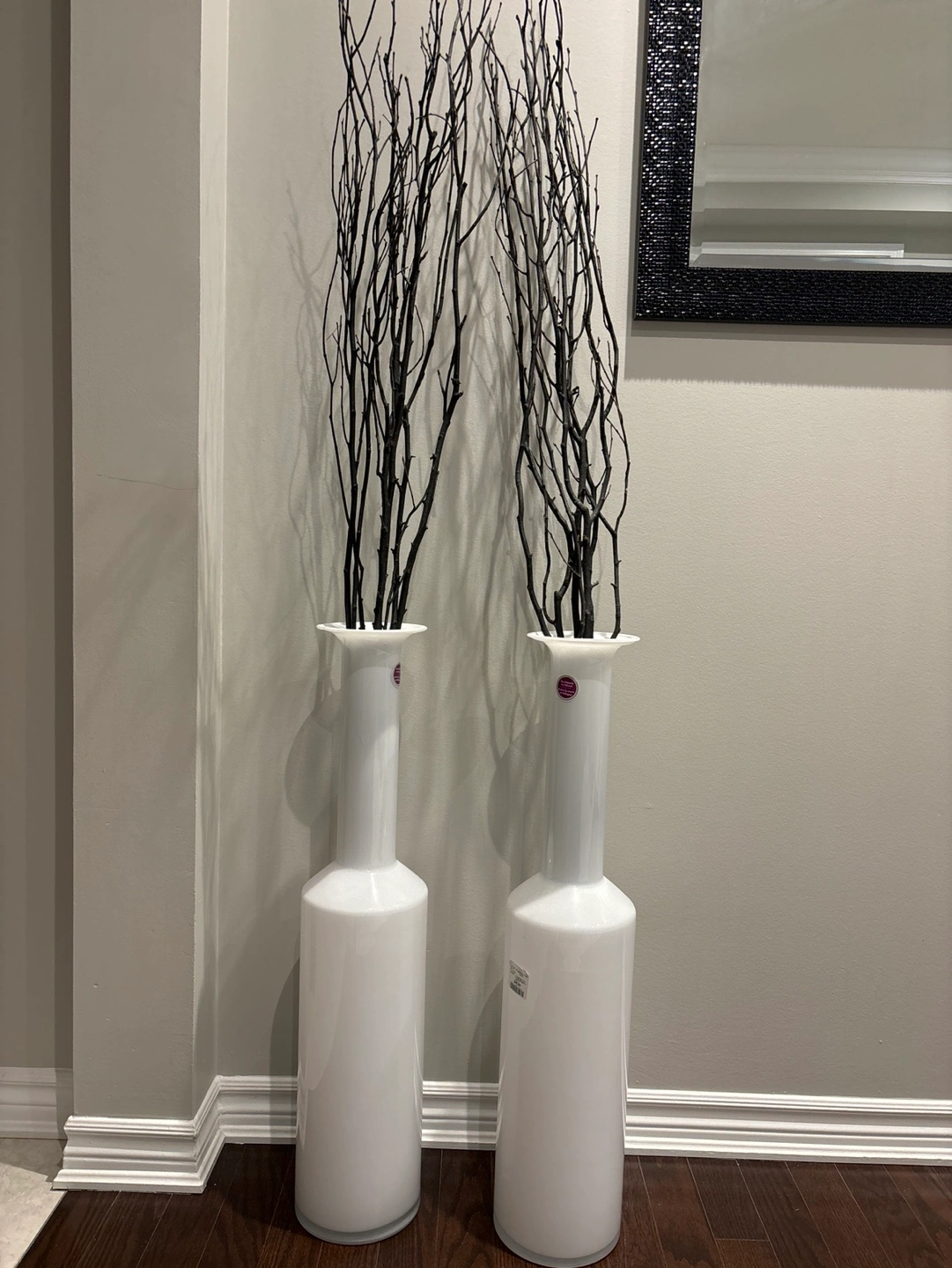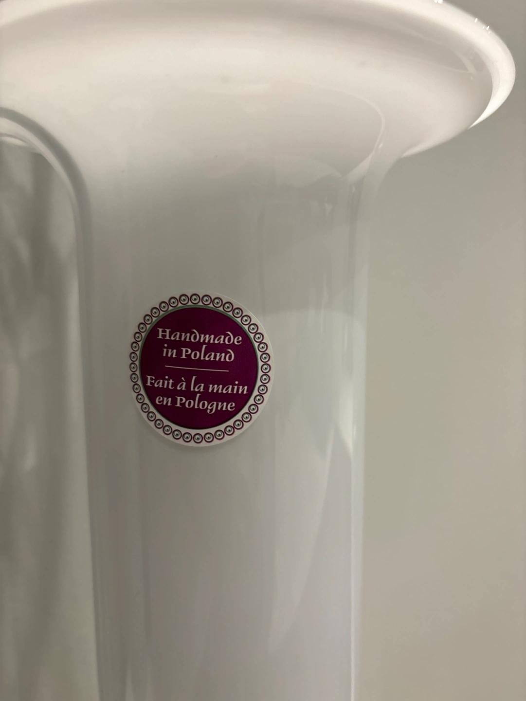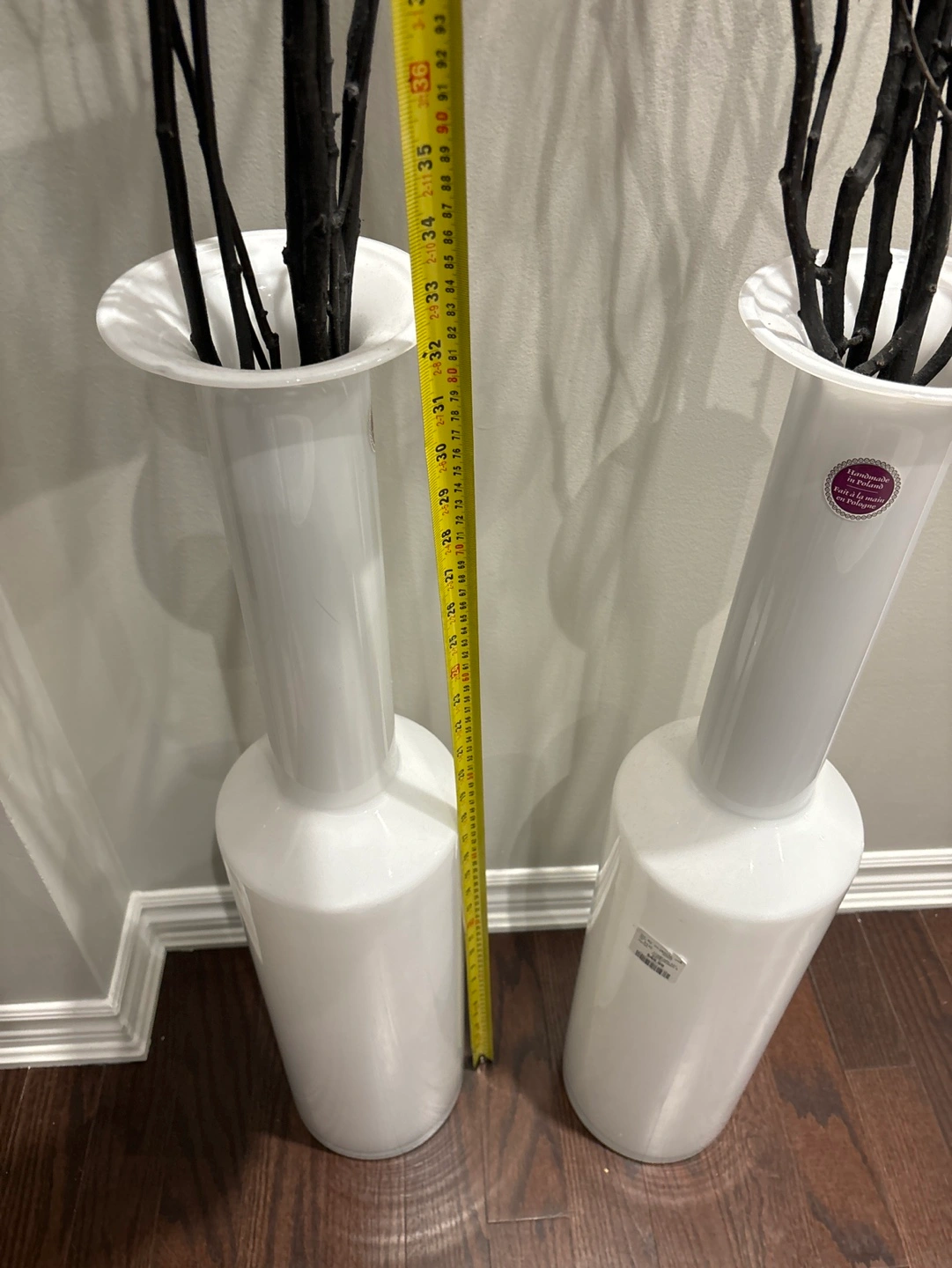 18Set of two white vases. Tall and slender, with a wide opening. Handmade in Poland.