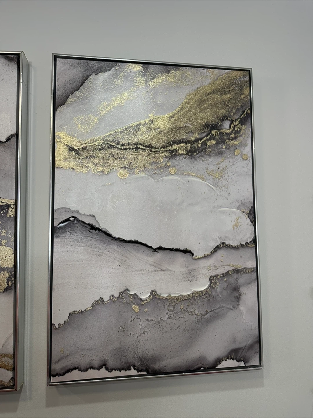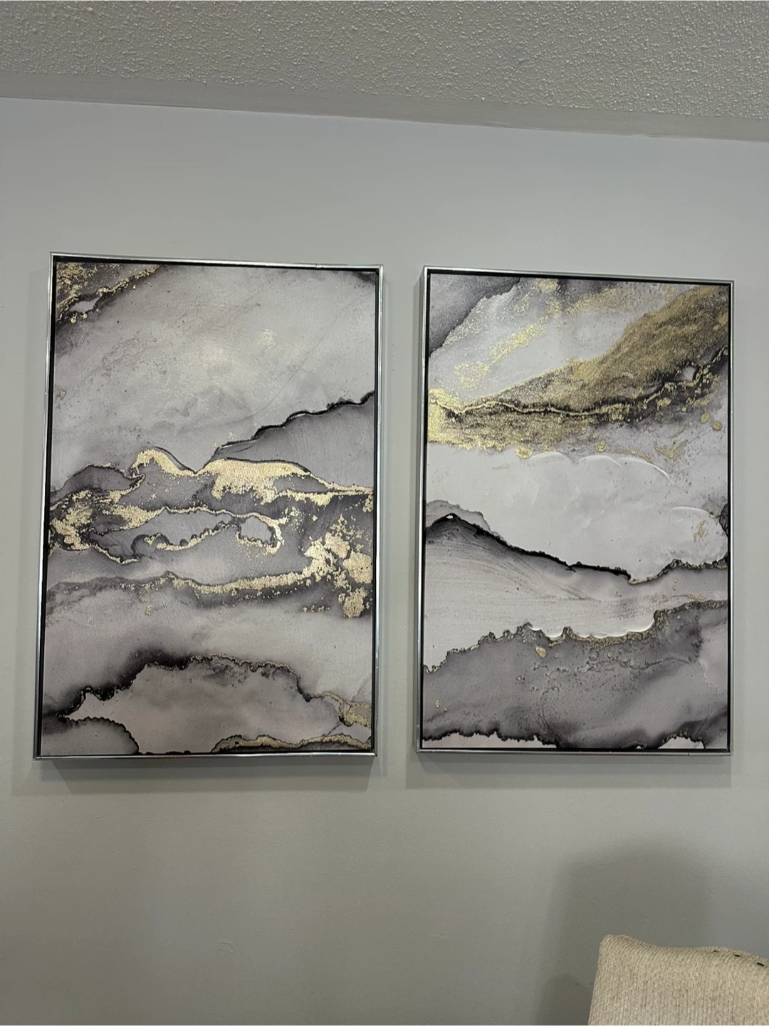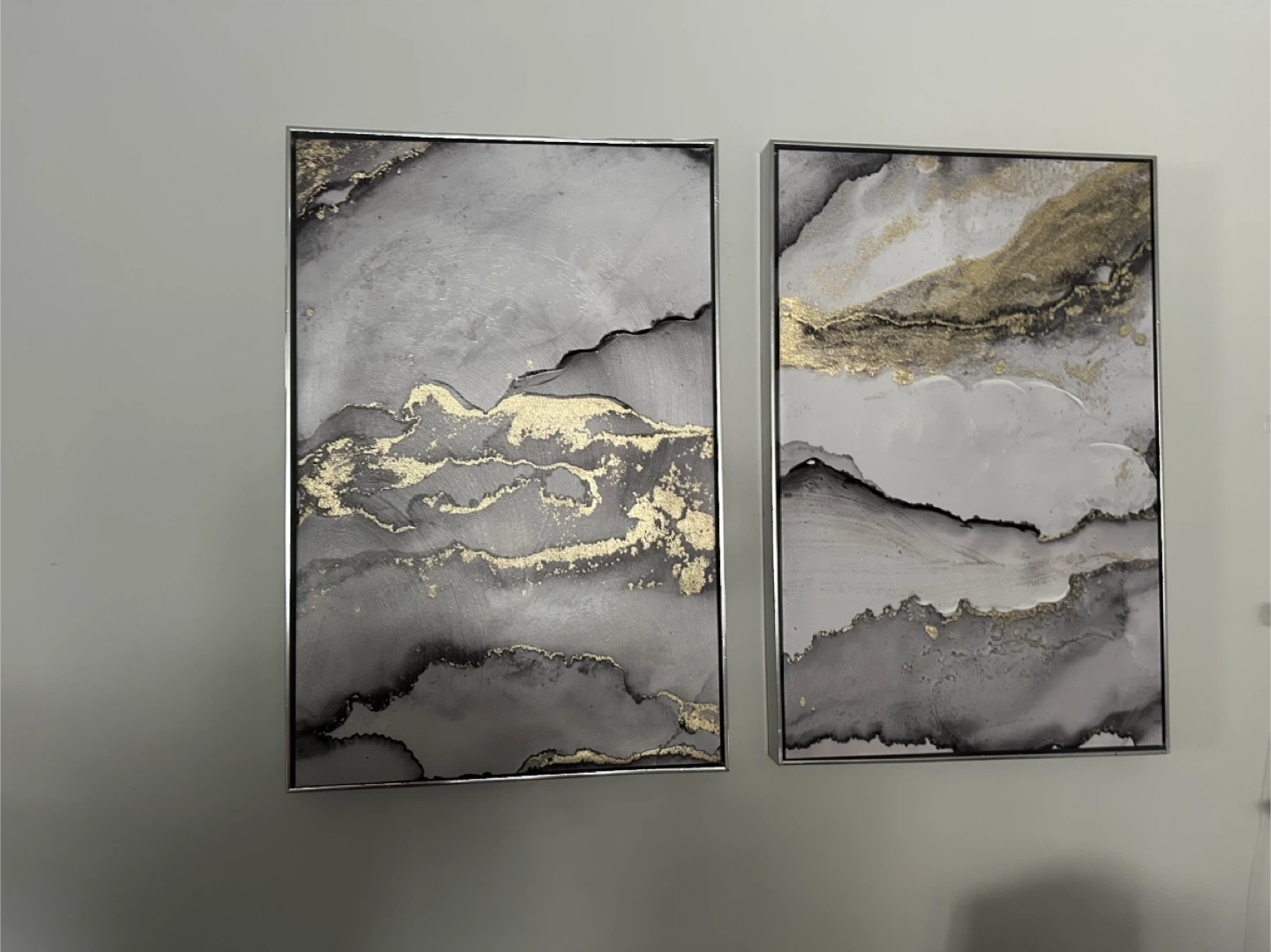 5Set of two framed art pieces. Each piece is 3ftx 2ft. Perfect for any bedroom or living room. Trendy design in great condition