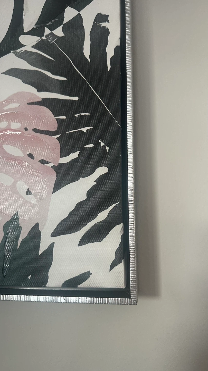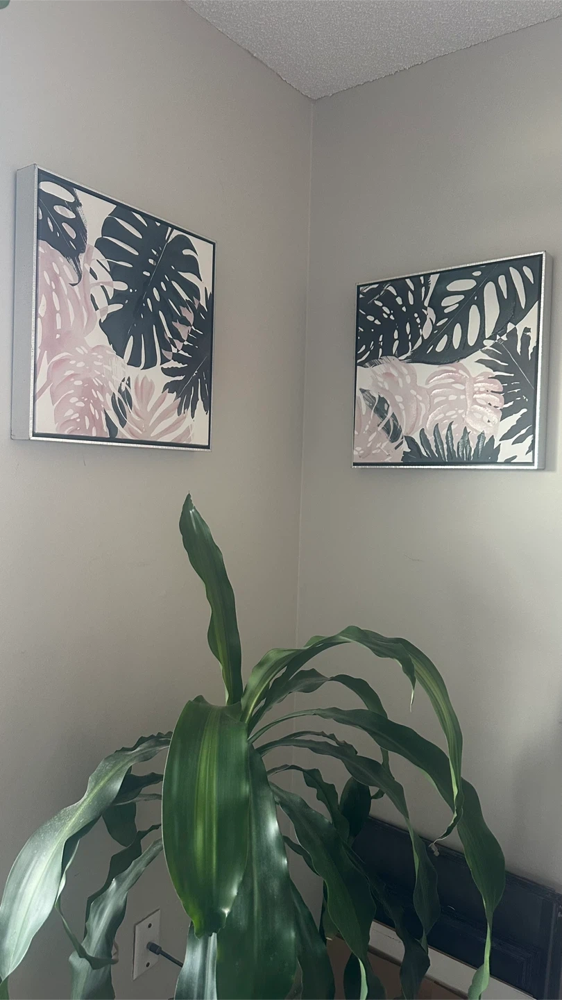 158Selling a set of two framed botanical prints featuring monstera and other tropical leaves in black, white, and pink tones. These prints are in great condition and would add a touch of nature to any room. 📍Pickup at 88 Erskine ave.