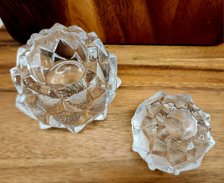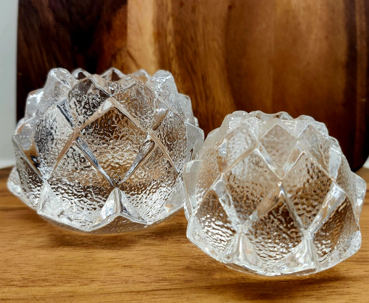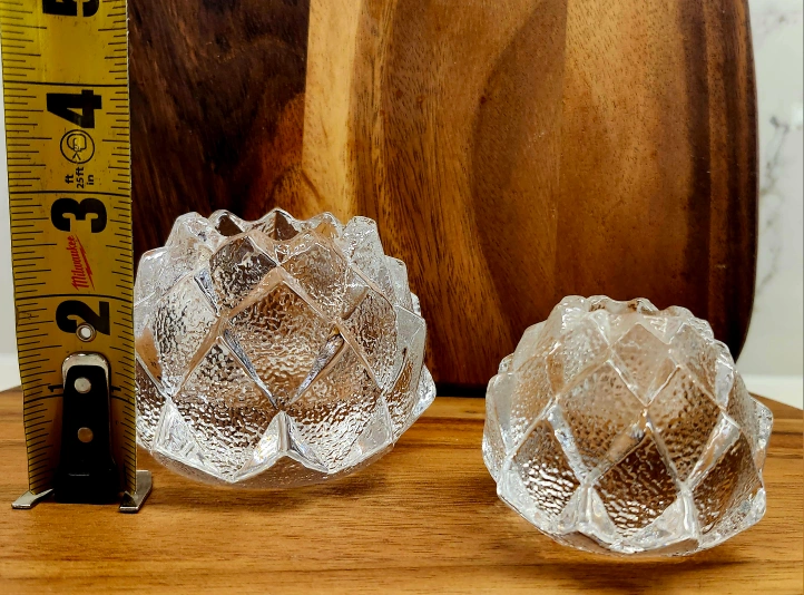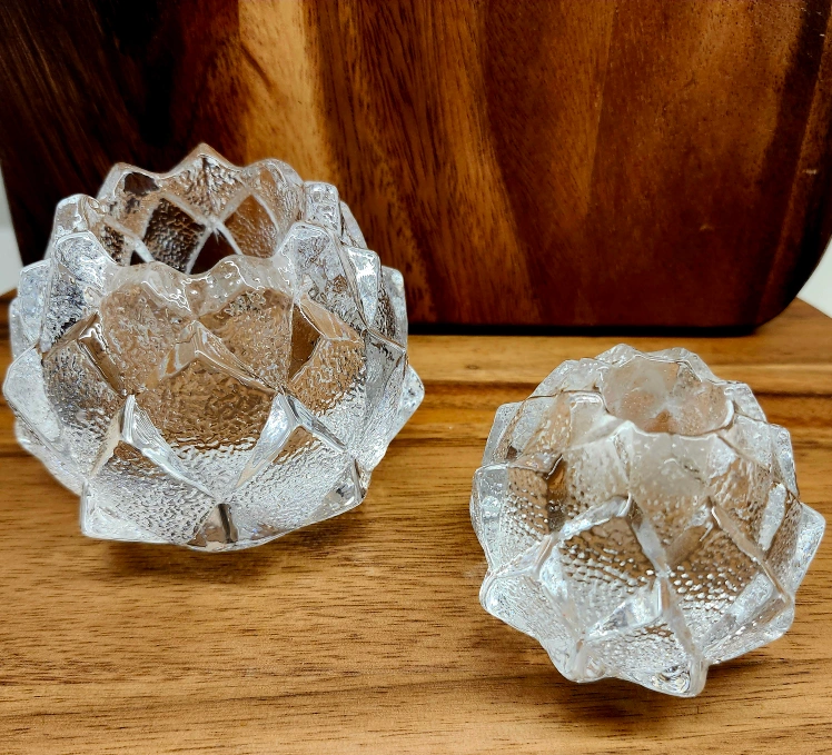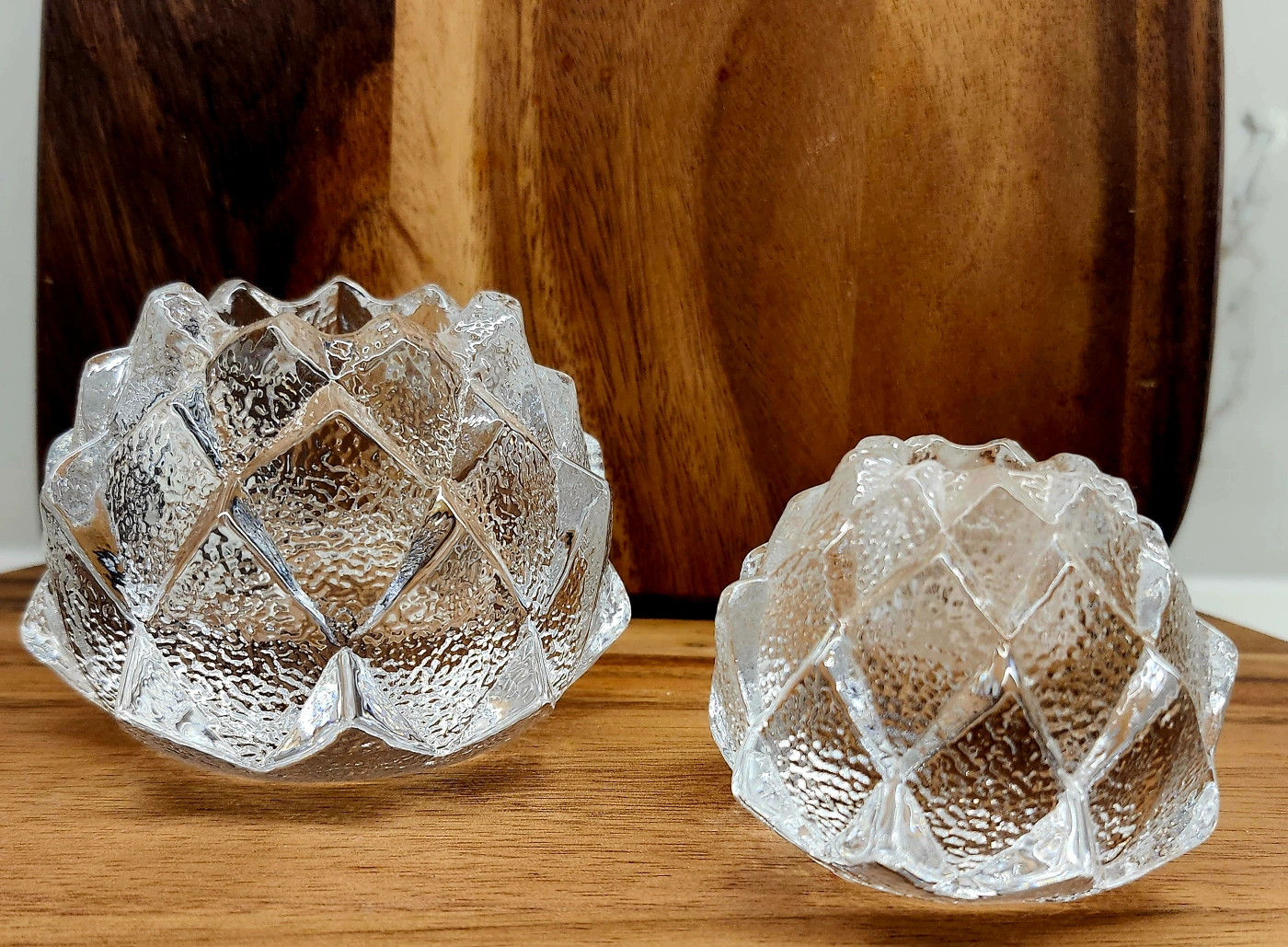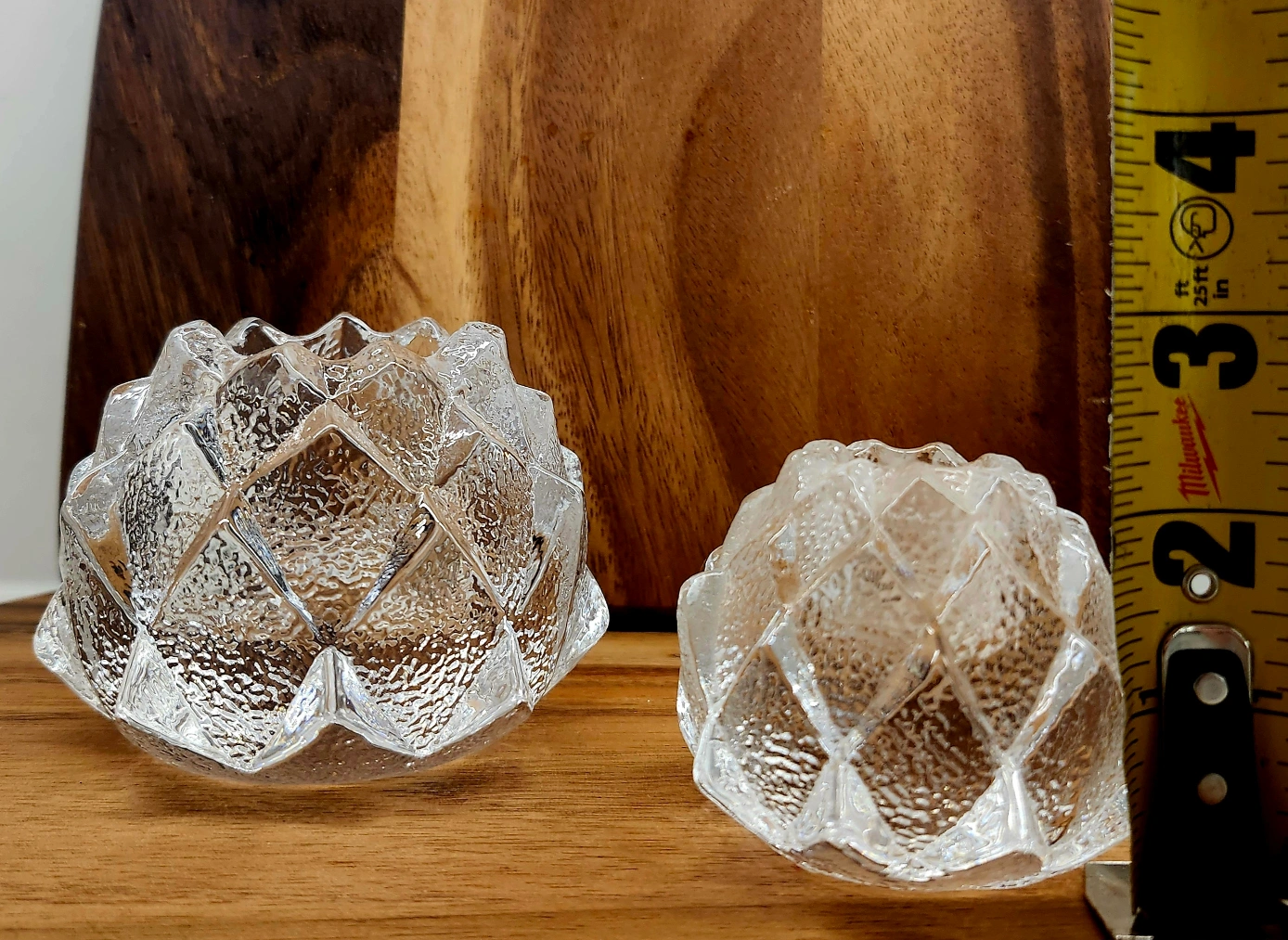 Set of 2 Orrefors Crystal Sweden FIREFLY ARTICHOKE Votive and Taper Candle Holders