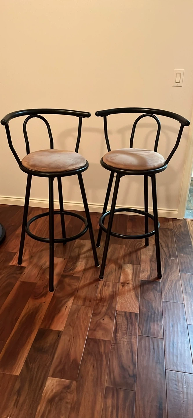 Selling a set of two bar stools. They have a black metal frame and a tan seat. There is some wear and tear on the seats, as shown in the photos, but they are still sturdy and functional. $15 each / 2 for $30 Floor to top of seat is 29 1/2” 133 ave and 239b street maple ridge