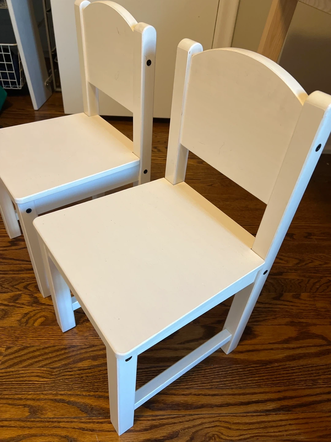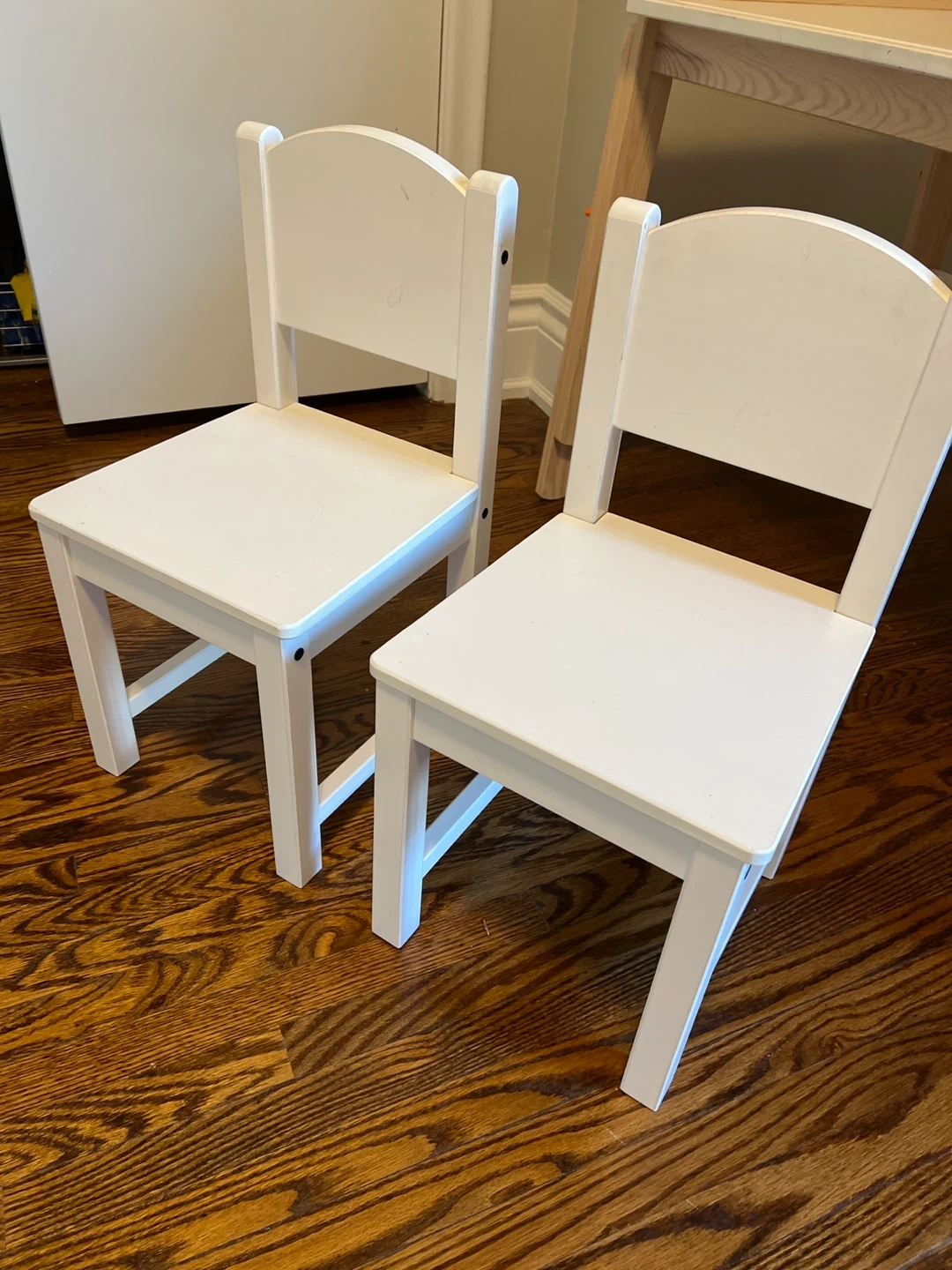 10Selling a set of two solid pine white chairs for kids! IKEA Sundvik - They're in great shape and perfect for a playroom or kids' table. They're sturdy and ready for a new home.