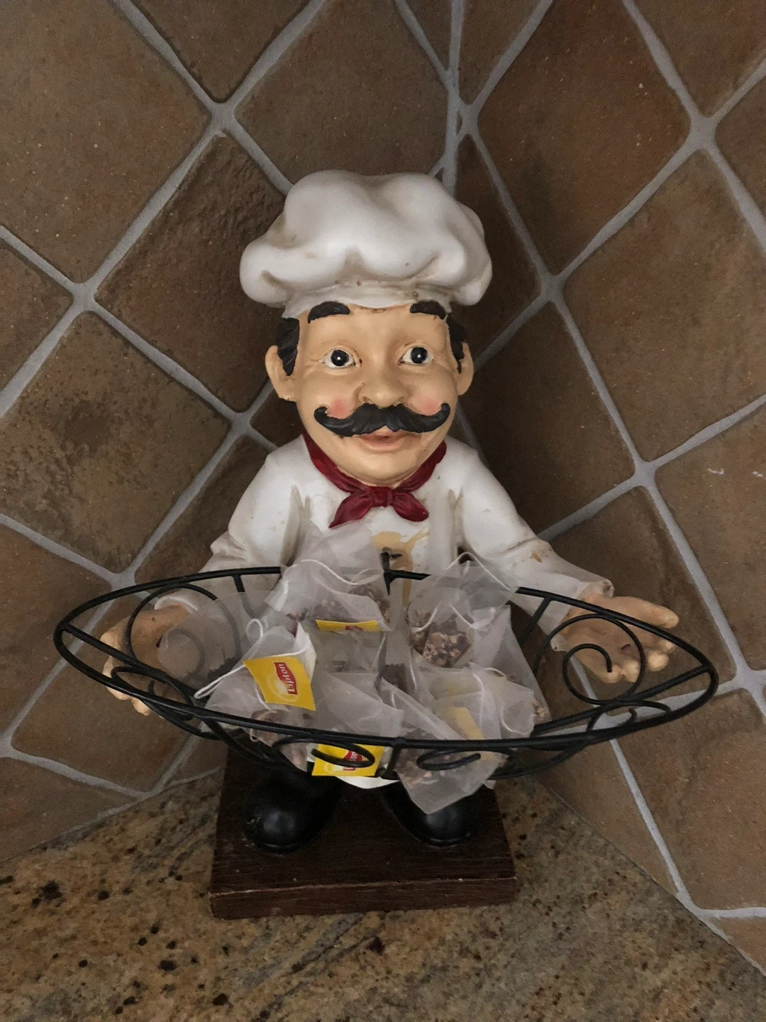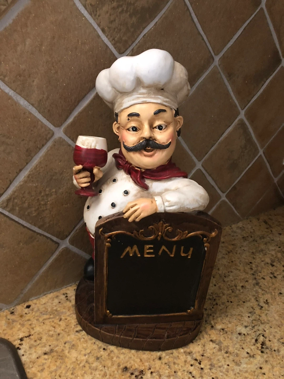 5Here's a charming chef statue set!! Each one is 13 inches tall. One can hold tea bags and one can display your menu on a chalkboard. A cute addition to any kitchen or dining area