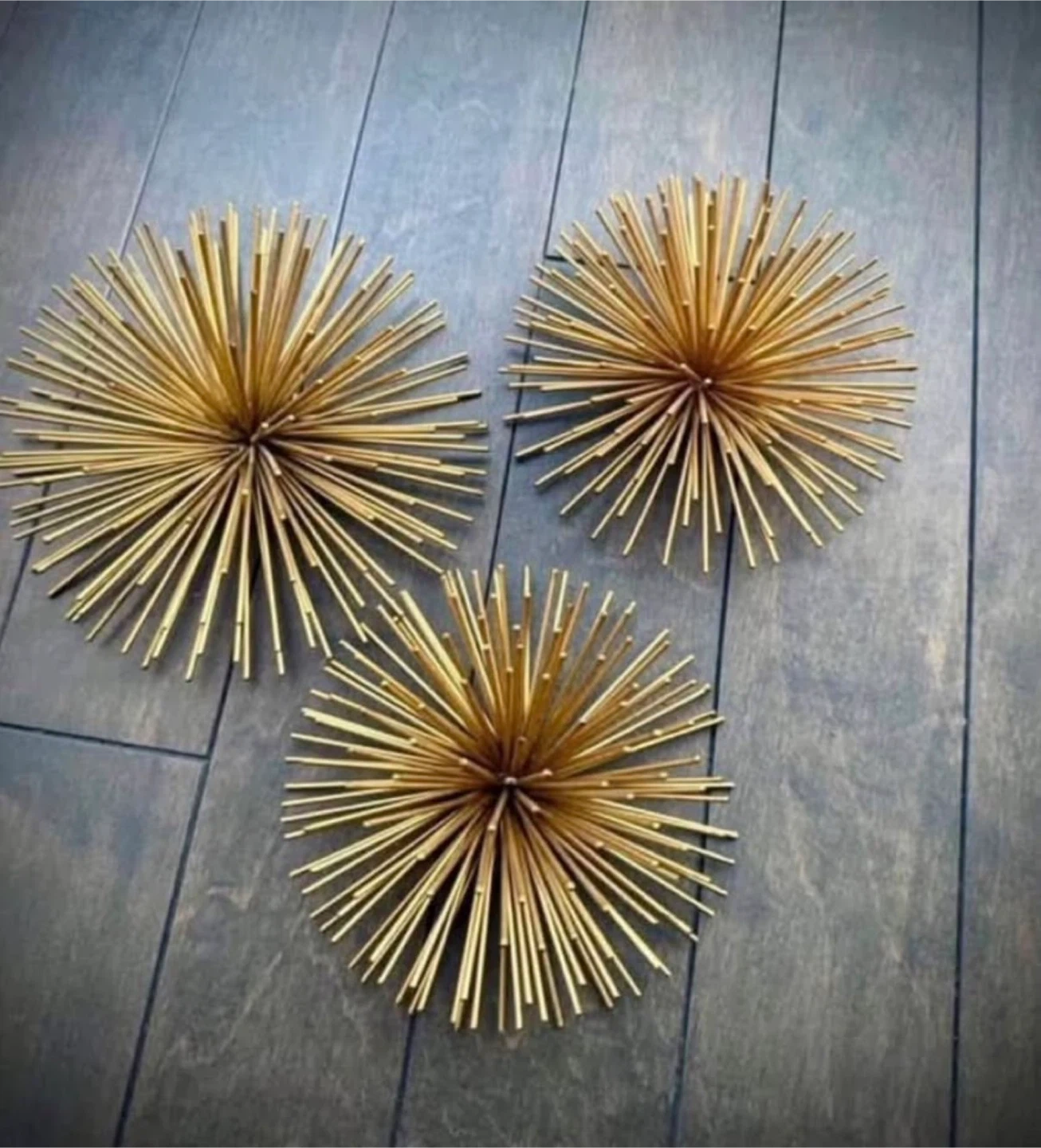 Selling a set of three decorative gold sputnik orbs. These are great for adding a touch of modern flair to any room. They're in excellent condition and ready to find a new home!