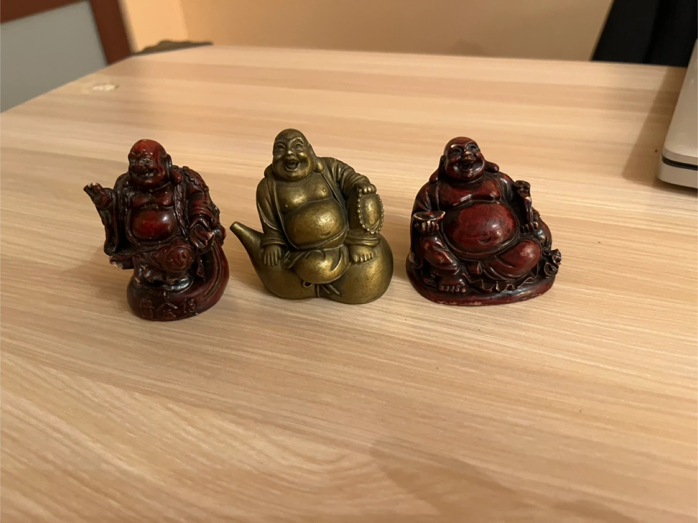 250Four dollars each available for two days Selling a set of three unique Laughing Buddha figurines. They are in good condition and would make a great addition to any collection or home decor