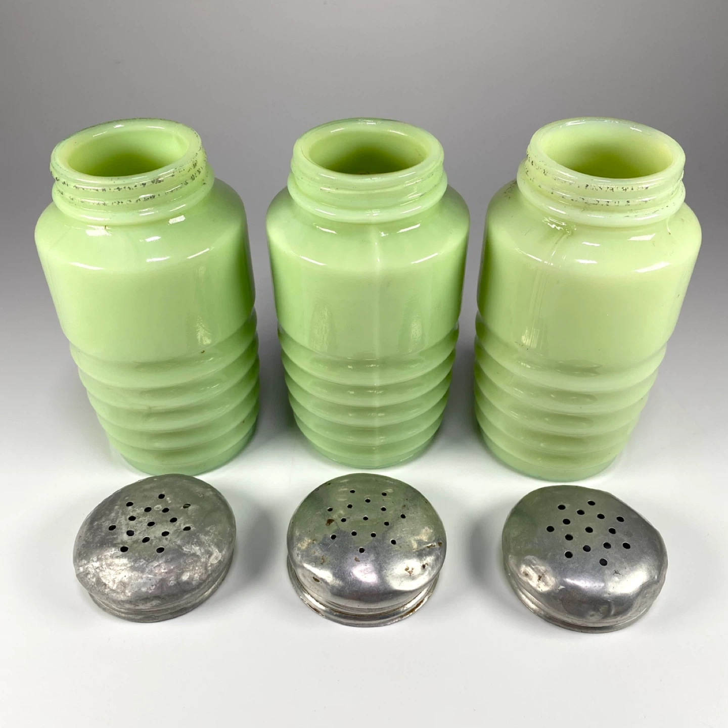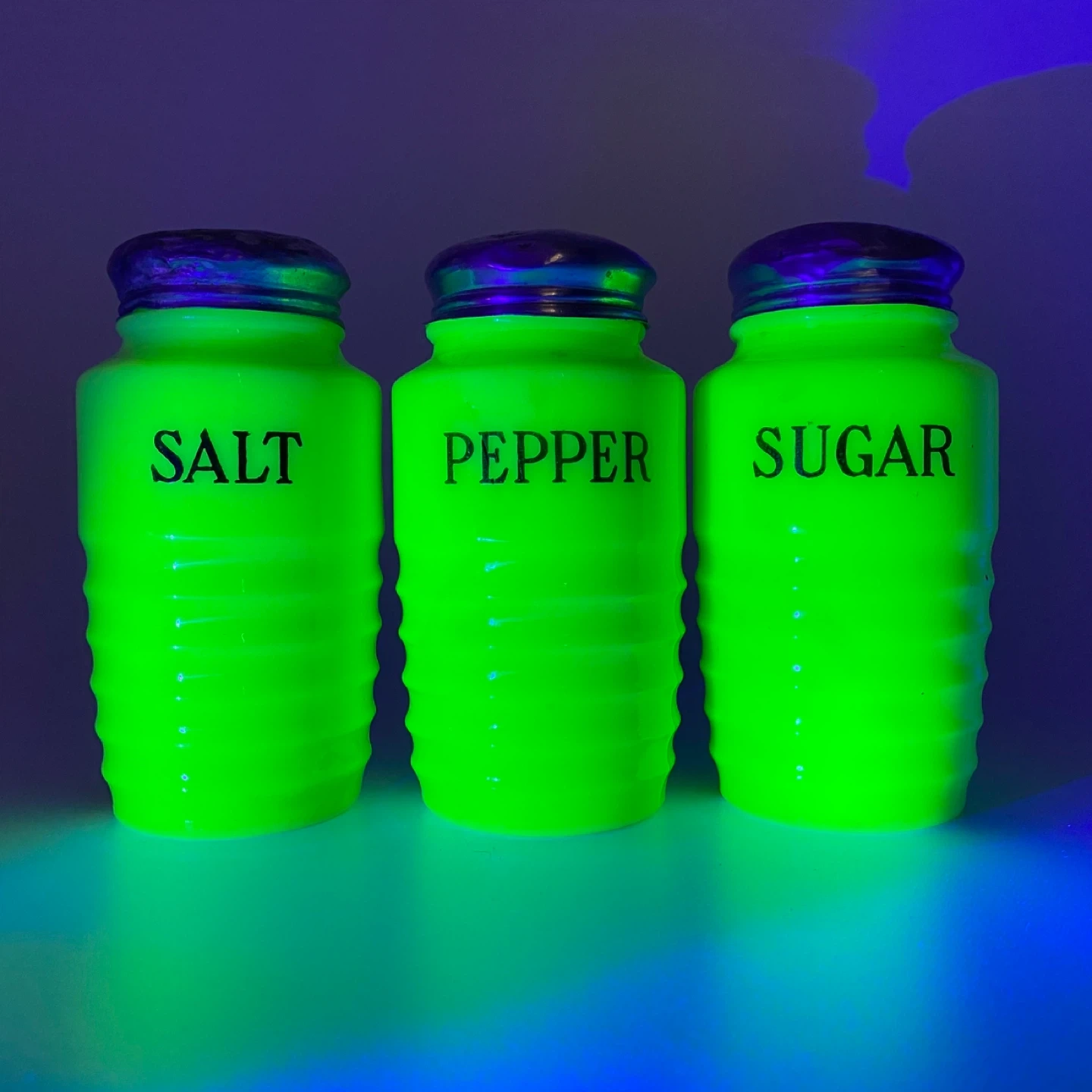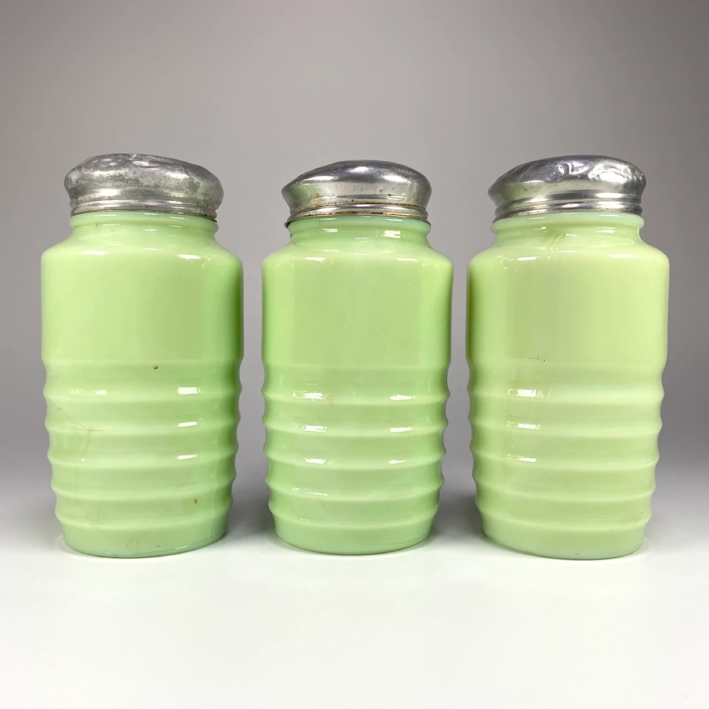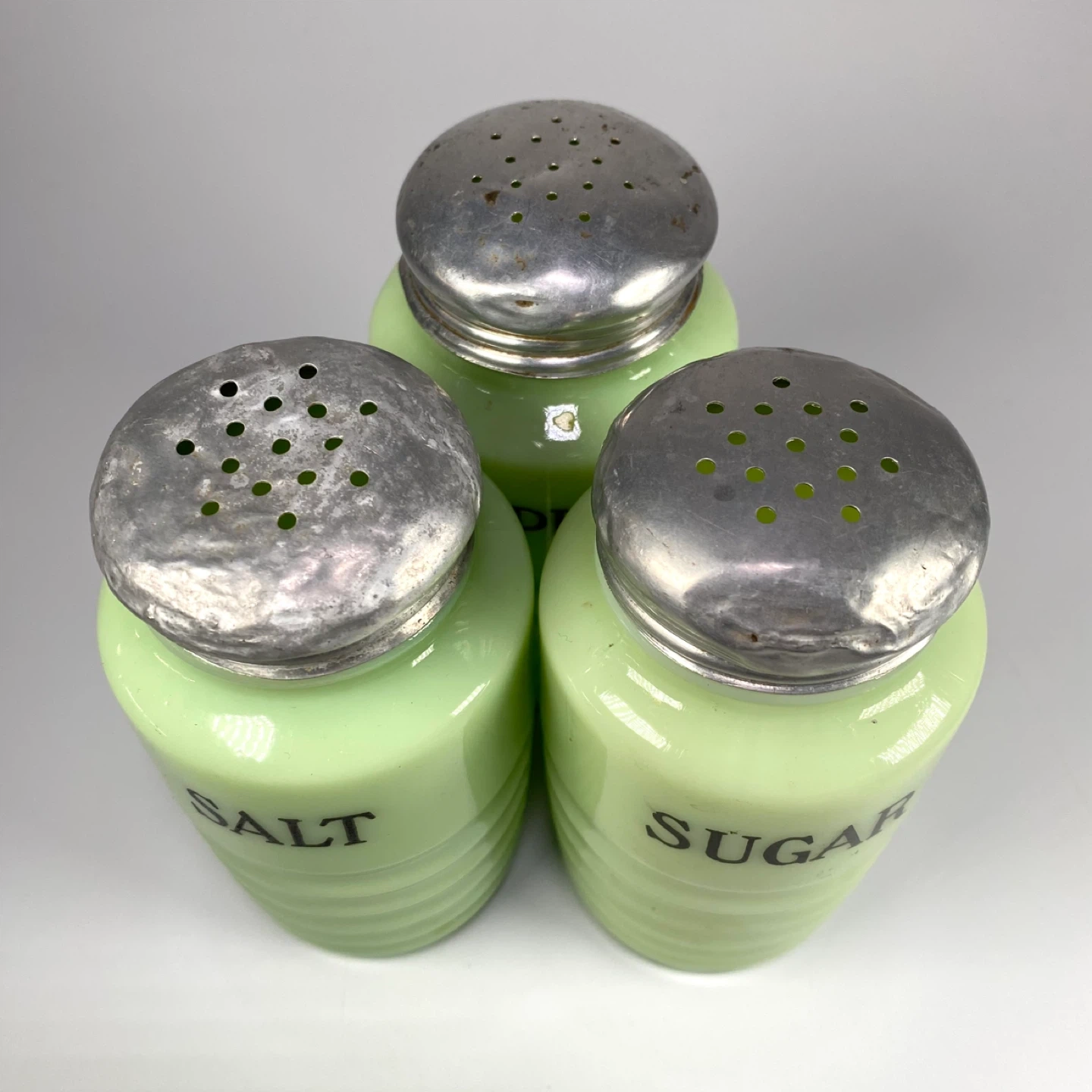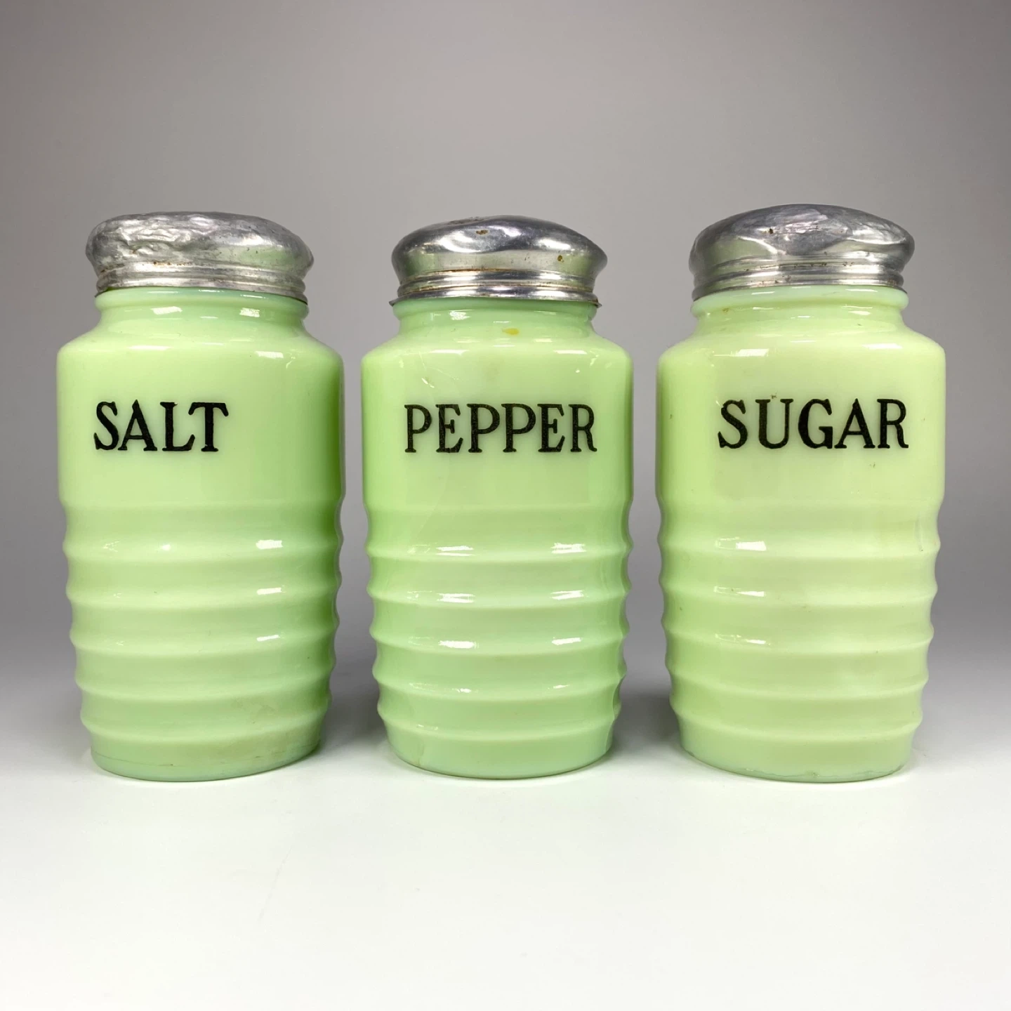 Set of 3 Jeannette jadeite uranium glass beehive salt, pepper, and sugar shakers. ~4.75βh π₯$95/trio β Yes, it is available π Pick up near Bloor & Ossington π Downtown delivery extra π¦ Ask about shipping