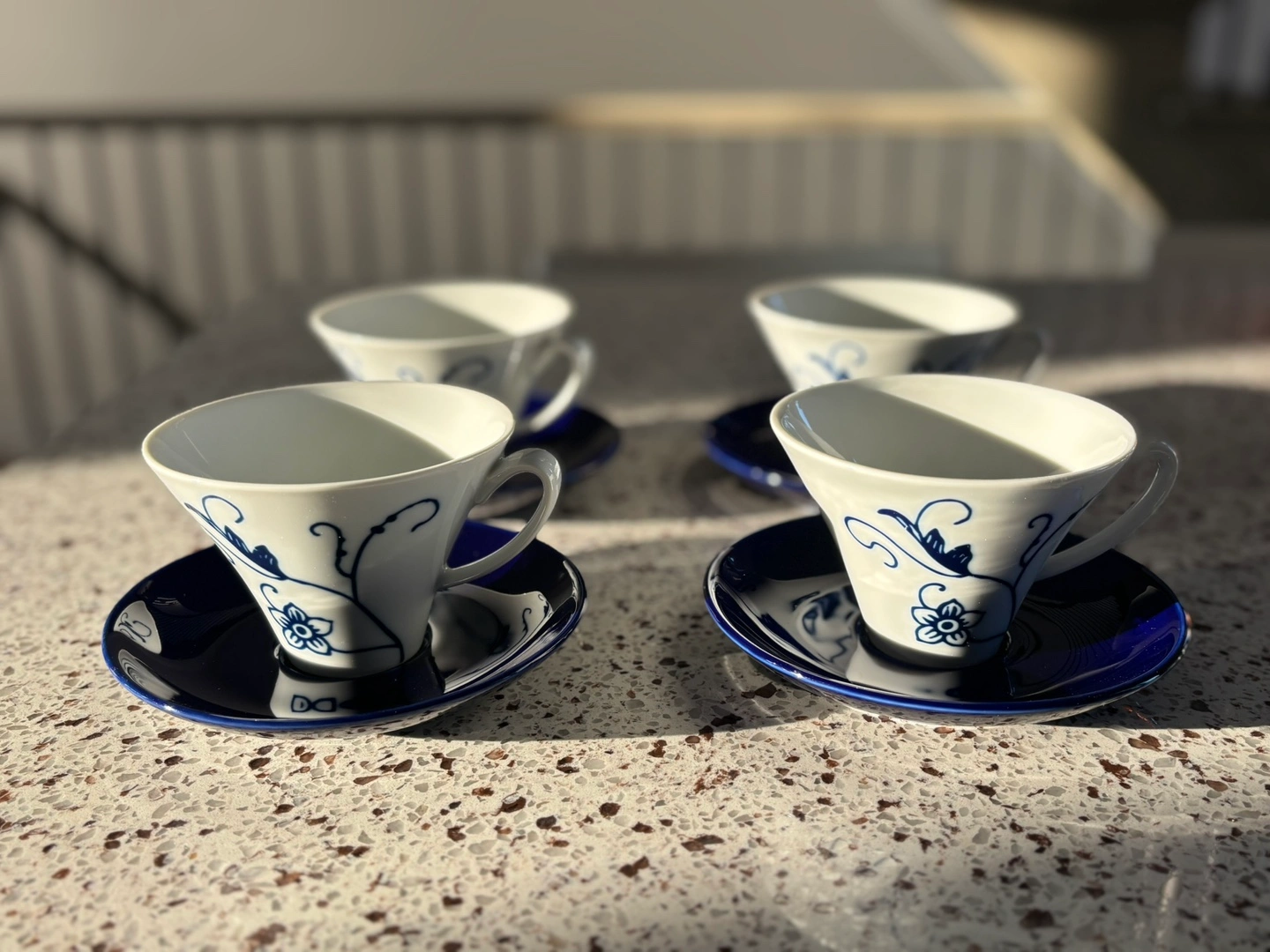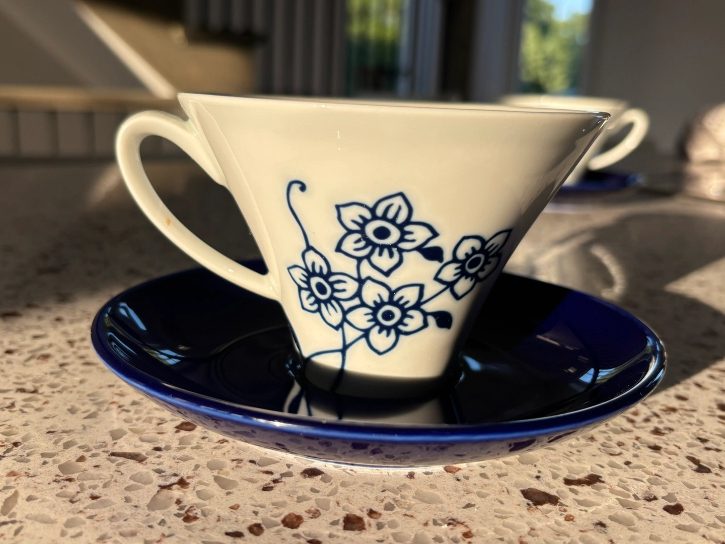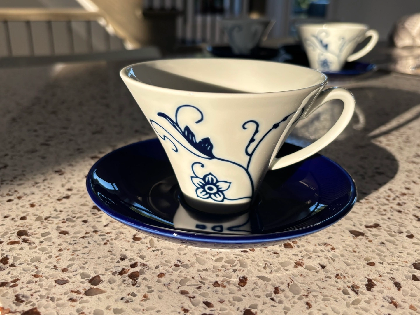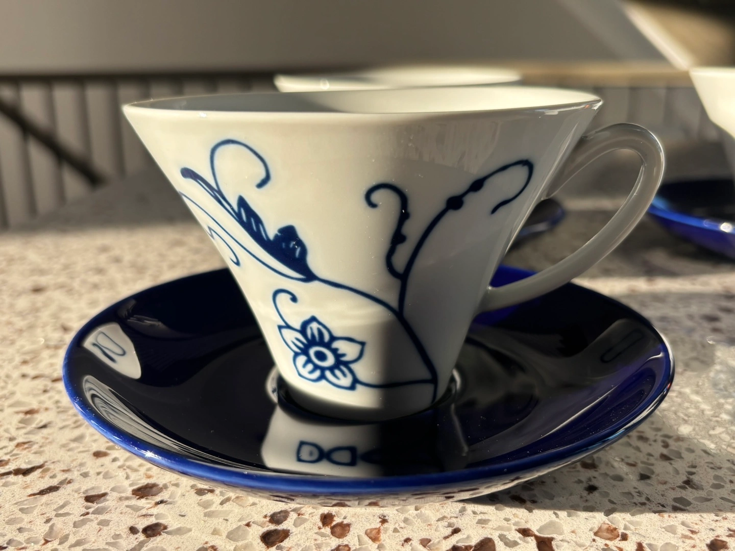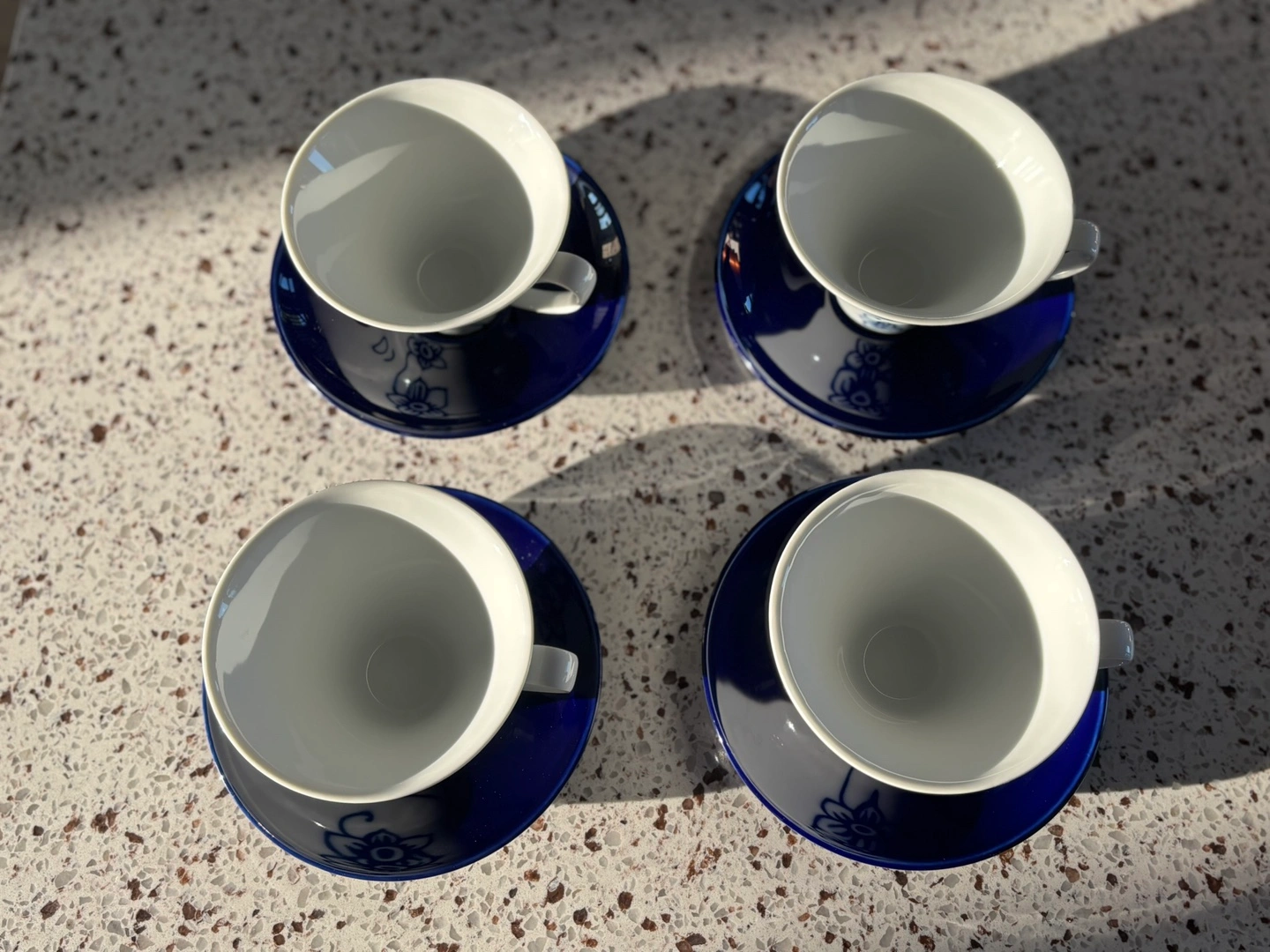 Hardly used Never been in a dishwasher Porcelain from Portugal Organic flower design in white and cobalt blue