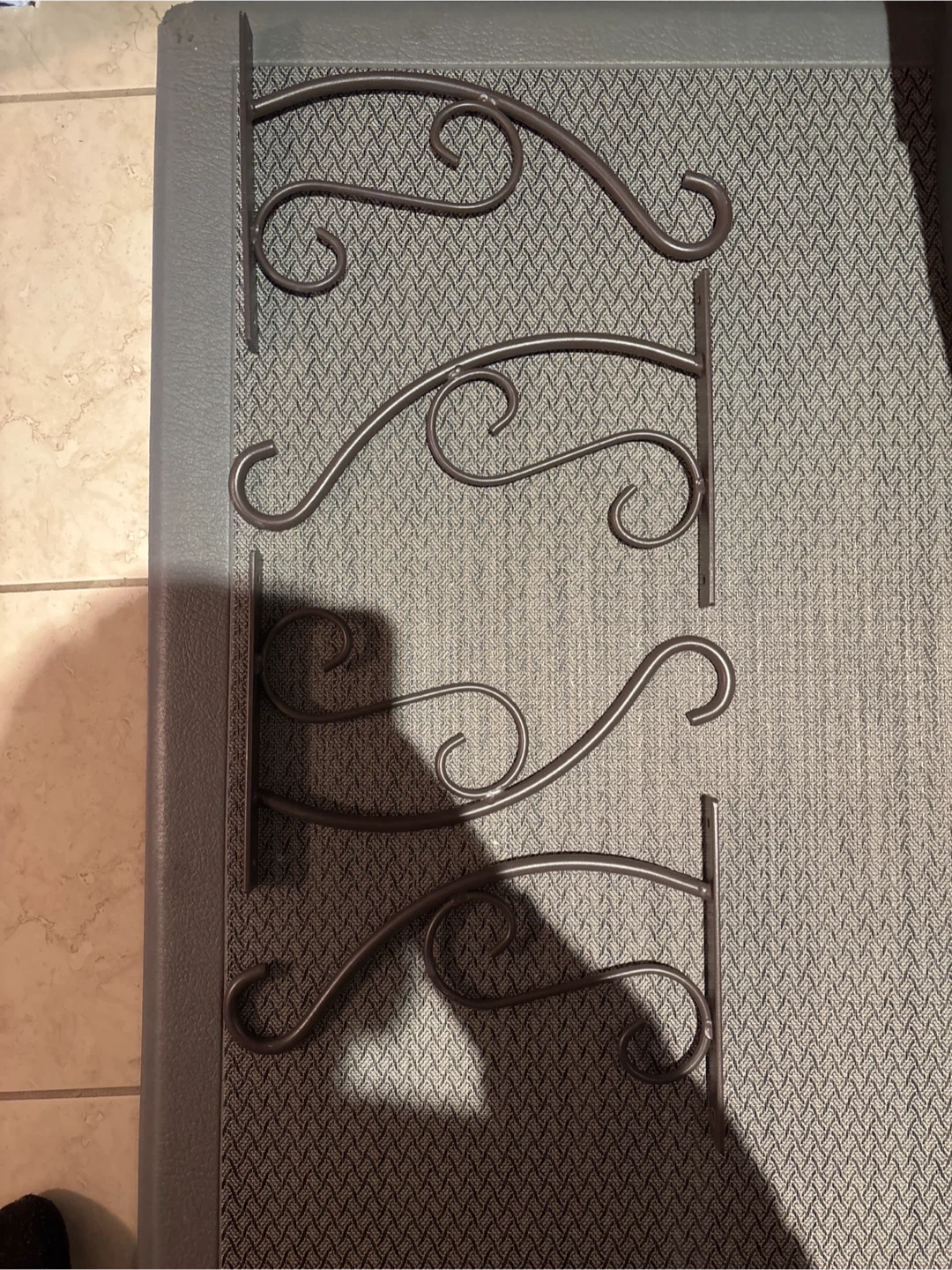 18Selling a set of four metal plant hanger brackets. They have a nice decorative swirl design. Great for hanging plants indoors or outdoors!