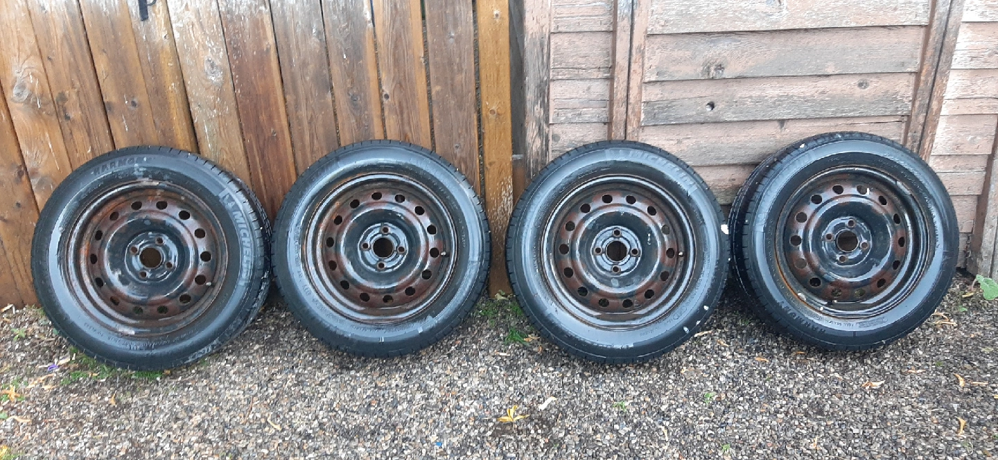 Selling a set of four Michelin Harmony all season tires and rims P185/65R15. Bolt pattern 5 X 105.These are in good working condition and ready to go. Good for a season or two easily. No rips, plugs or patches. Clean tires. Similar tires are selling between $100-$130. Prices for a quick sale at $74. I need the space. Yes it's available if you see the ad up. FCFS. Cash only.
